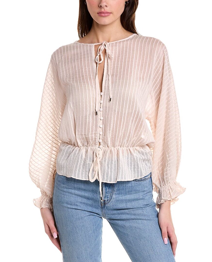Color/Pattern - Off-White Approximately 21In From Shoulder To Hem Model Is 5'11 And Is Wearing A Size 4. Measurements May Vary Slightly By Size. Design Details - Self-Tie Keyhole Neck, Dolman Sleeves, Elasticized Cuffs, And Self-Tie Front Waist Button Front 55% Polyester, 45% Rayon Machine Wash Imported