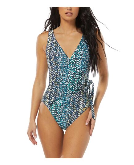 Womens Printed Surplice Neck One-Piece Swimsuit
