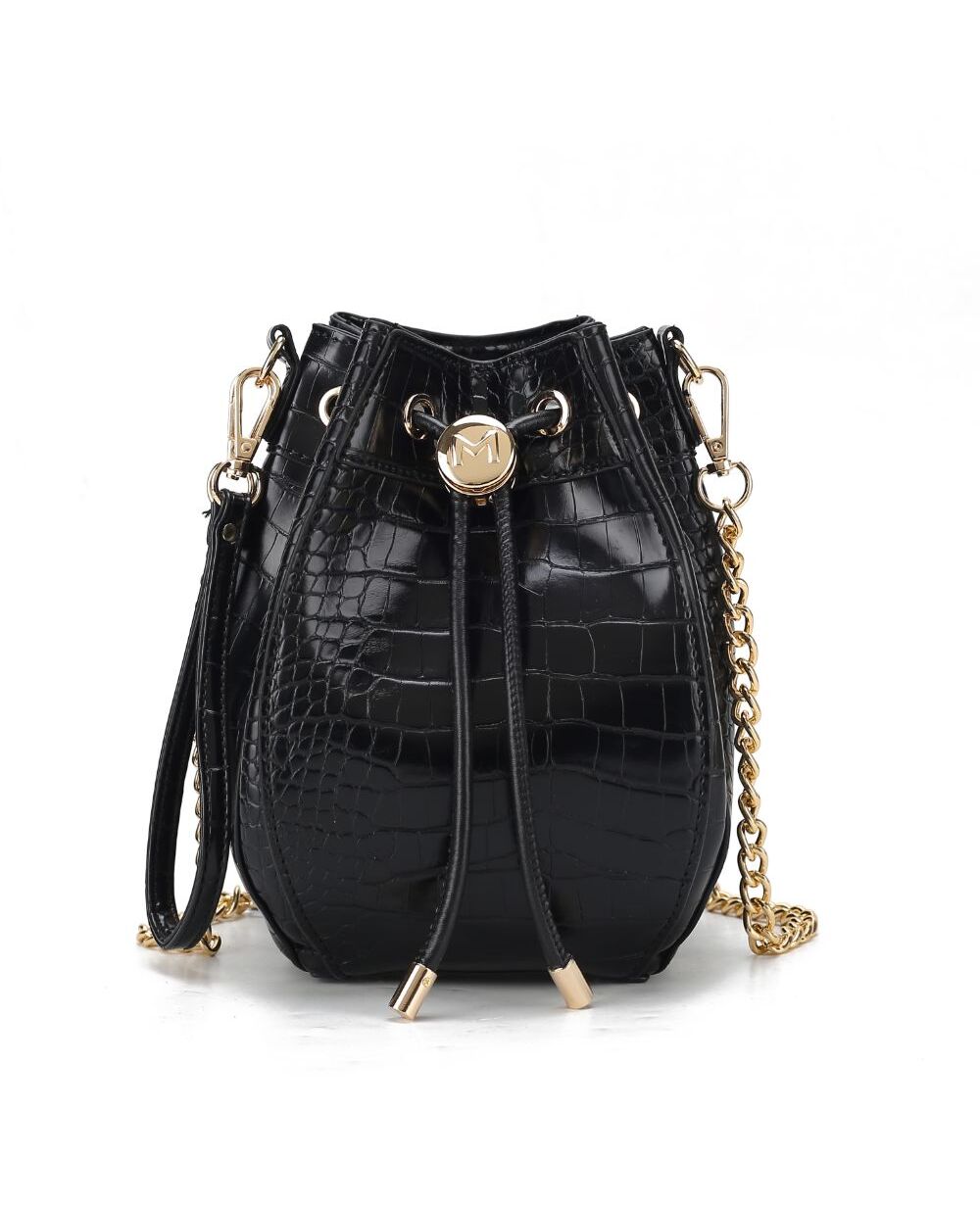 The Cassidy Crocodile Embossed Vegan Leather Women’s Hobo Bucket Bag is a stylish and functional Hobo bag designed for women. The bag is made of high-quality animal-friendly vegan leather that is embossed with crocodile pattern, giving it a unique and fashionable look. The bag features a spacious main compartment with a drawstring closure, as well as multiple pockets and compartments for organizing and storing personal items such as smartphones, wallets, keys, and makeup. The interior is lined with a soft, durable material to protect your belongings. Overall, the Cassidy Hobo Bucket Bag is a chic and practical bag that is perfect for everyday use. POCKETS - Interior features a wall zip pocket, one slip pocket. Measurements - 4.3” W x 8.6” H x 4.3” D Adjustable and Removable strap - extends to 24” Wristlet strap - 5” This product is not affiliated with Michael Kors.