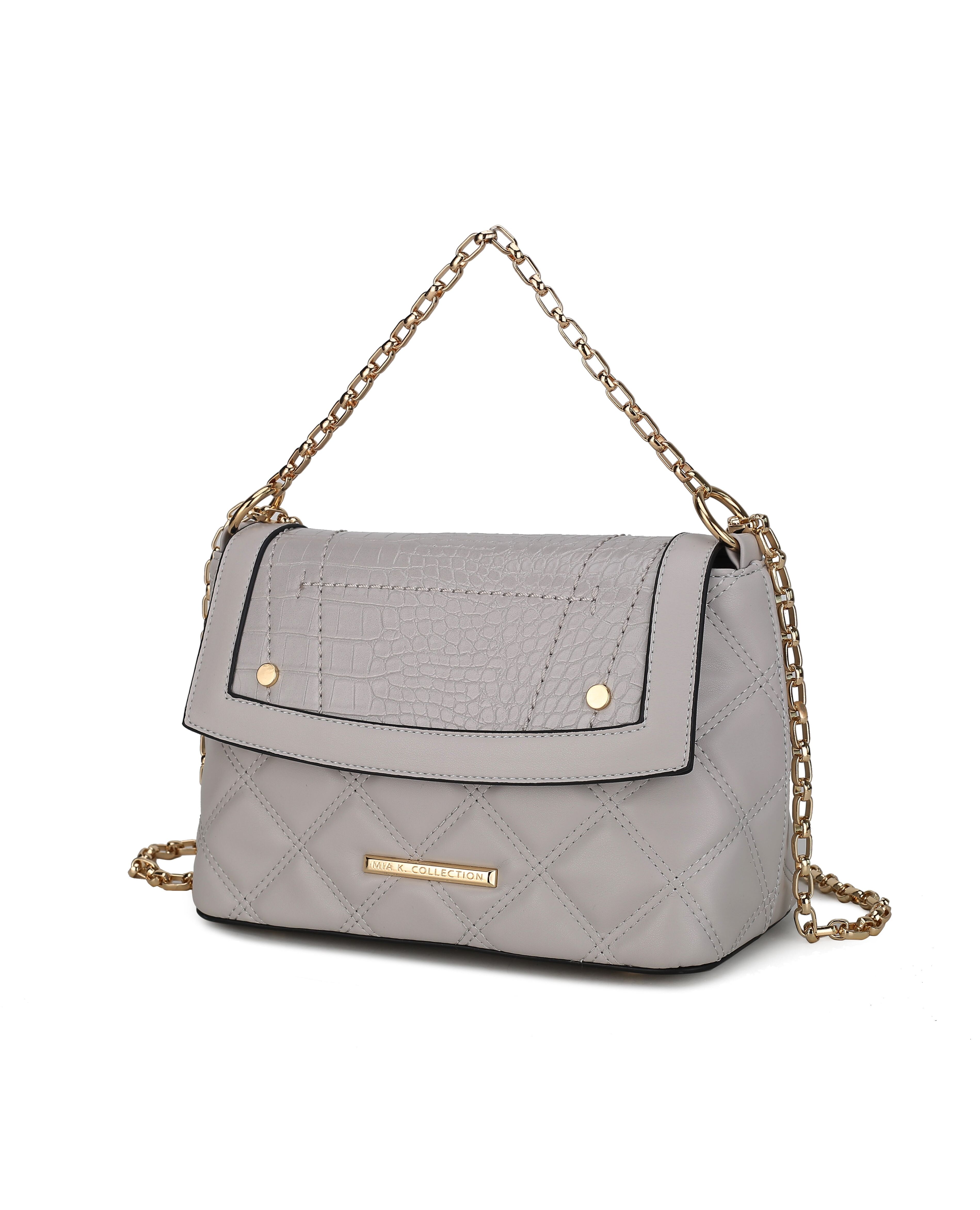 Meet Danna Shoulder Bag - a classic, versatile, and elegant bag. Crafted from luxe smooth vegan leather and matched with faux crocodile embossed, this handbag features a quilted pattern and gold-tone hardware for tactile glamour. With a magnetic snap fastening, opens it to reveal spacious interior with a wall zip pocket and a slip pocket. The exterior features a convenient back zip pocket. We made this bag convertible, so you can wear it as a shoulder bag or crossbody bag. It has a flat base and protective metal feet. The Danna Shoulder Bag comes with our plate emblem on it. You will love this sophisticated bag. POCKETS - Interior features a wall zip pocket and one slip pocket. Exterior features one zippered back pocket. Measurements: 10.25” W x 6.7” H x 5” D Handle Drop: 4.75” Strap: 13”-23”