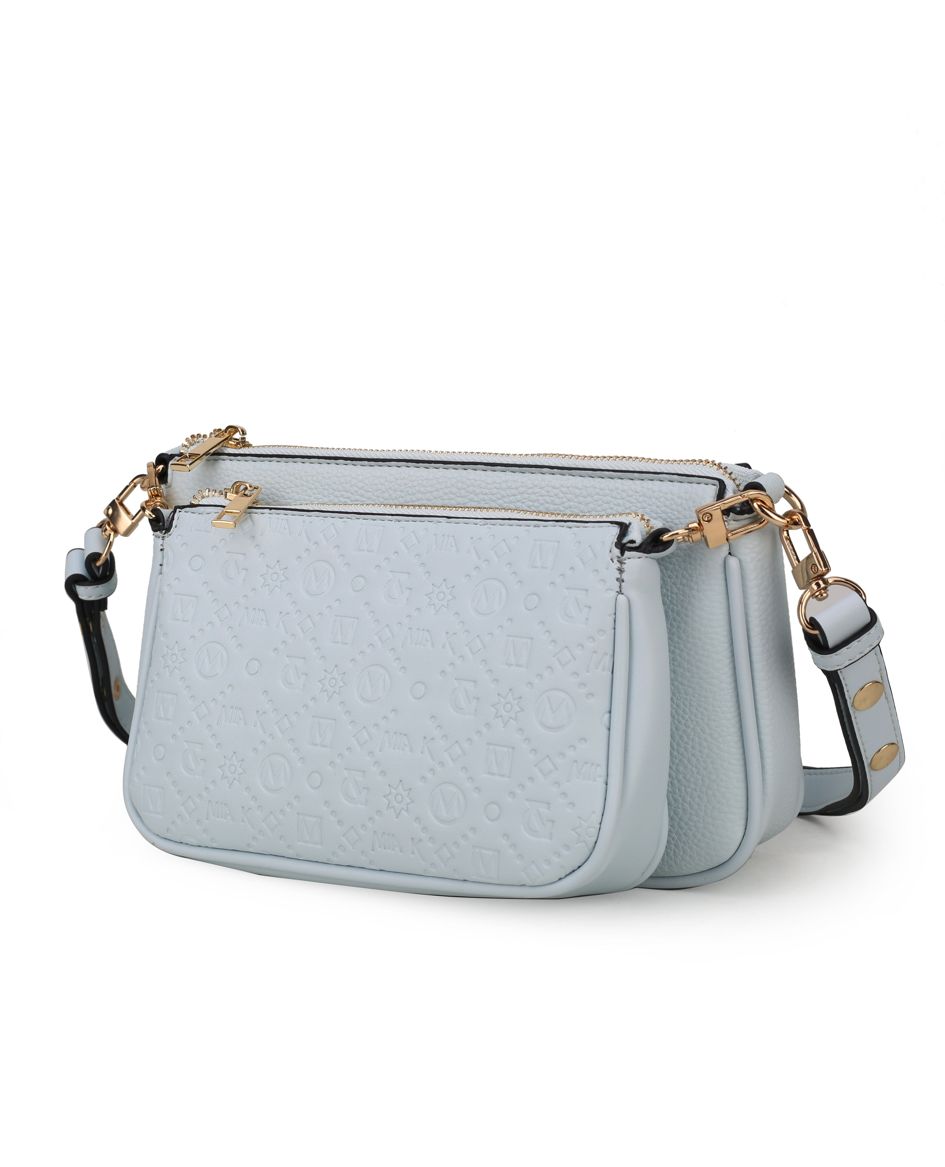 A hands-free style with maximum utility, this fashionably practical Dayla Shoulder bag will keep you organized on the go. Crafted from high-quality pebbled vegan leather and designed with gold-tone embellishment, you will love this versatile style. Unzips the medium bag to reveal a fully lined interior with a wall zippered pocket and a slip pocket for all your daily essentials. It comes with a detachable and adjustable strap, that you can wear it crossbody or carry it on your shoulder. Attached to this bag, is a small baguette inspired silhouette. It is crafted from a high-quality vegan leather and accented with a beautiful, pressed pattern. There is a zippered pocket inside it. You can use both bags together and separate when your mood strikes. The Dayla Shoulder Bag is the best multipurpose bag you will have. POCKETS - Medium Bag- Interior features a wall zip pocket, one slip pocket. Small Bag- Interior features one zippered pocketMeasurements - Medium Bag- 10” W x 5.75” H x 2” DSmall Bag- 8” W x 5” H x 1.75” DAdjustable and Removable strap - 12”