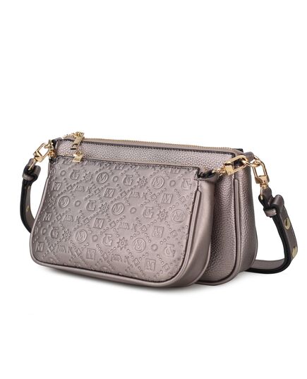 A hands-free style with maximum utility, this fashionably practical Dayla Shoulder bag will keep you organized on the go. Crafted from high-quality pebbled vegan leather and designed with gold-tone embellishment, you will love this versatile style. Unzips the medium bag to reveal a fully lined interior with a wall zippered pocket and a slip pocket for all your daily essentials. It comes with a detachable and adjustable strap, that you can wear it crossbody or carry it on your shoulder. Attached to this bag, is a small baguette inspired silhouette. It is crafted from a high-quality vegan leather and accented with a beautiful, pressed pattern. There is a zippered pocket inside it. You can use both bags together and separate when your mood strikes. The Dayla Shoulder Bag is the best multipurpose bag you will have. POCKETS - Medium Bag- Interior features a wall zip pocket, one slip pocket. Small Bag- Interior features one zippered pocketMeasurements - Medium Bag- 10” W x 5.75” H x 2” DSmall Bag- 8” W x 5” H x 1.75” DAdjustable and Removable strap - 12”