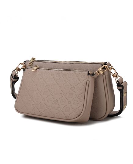 A hands-free style with maximum utility, this fashionably practical Dayla Shoulder bag will keep you organized on the go. Crafted from high-quality pebbled vegan leather and designed with gold-tone embellishment, you will love this versatile style. Unzips the medium bag to reveal a fully lined interior with a wall zippered pocket and a slip pocket for all your daily essentials. It comes with a detachable and adjustable strap, that you can wear it crossbody or carry it on your shoulder. Attached to this bag, is a small baguette inspired silhouette. It is crafted from a high-quality vegan leather and accented with a beautiful, pressed pattern. There is a zippered pocket inside it. You can use both bags together and separate when your mood strikes. The Dayla Shoulder Bag is the best multipurpose bag you will have. POCKETS - Medium Bag- Interior features a wall zip pocket, one slip pocket. Small Bag- Interior features one zippered pocketMeasurements - Medium Bag- 10” W x 5.75” H x 2” DSmall Bag- 8” W x 5” H x 1.75” DAdjustable and Removable strap - 12”