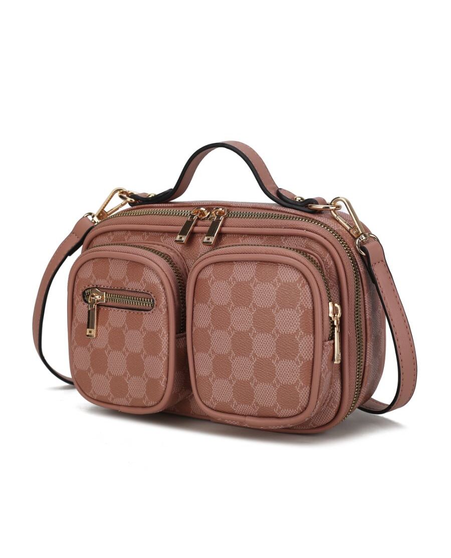 Our beautiful Jolene Crossbody channel everyday ease with a structured, camera bag silhouette. Crafted from a high-quality vegan leather, and designed with gold-tone embellishments, this bag goes from day to night with ease. Unzips to reveal a sizeable interior to stow your wallet, keys, phone, and lipstick, while convenient exterior zip pockets ensure all your small belongings stay secure. Detach the crossbody strap to carry it by the top handle for varied carrying options. you will love how its slim design offer the perfect solution for you. POCKETS - Interior features a wall zip pocket and a slip pocket. The exterior features two zip pockets and one zip pocket on it. Measurements - 8.5” W x 5.75” H x 2.25” D Handle Drop - 1.5” Detachable and Adjustable Strap - 21”-25”