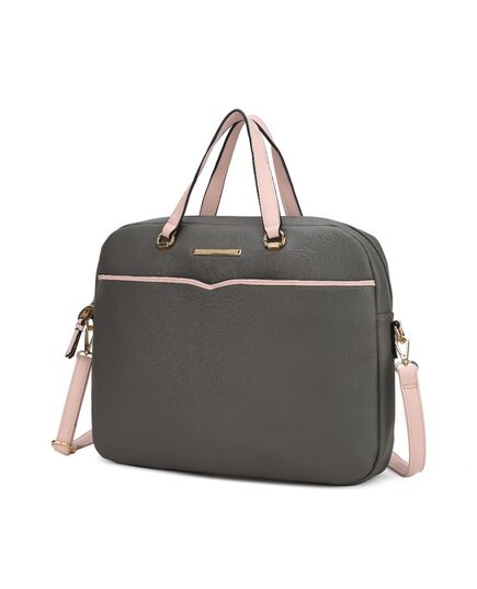 Beautifully crafted with top-grain Saffiano vegan leather, the Rose Briefcase is a sleek document case, with a catchy lining to accentuate the boldness of modern women. Spacious compartments are thoughtfully designed for stylish professionals to organize your business necessities effortlessly. The Rose Briefcase features top handles and a removable and adjustable crossbody strap for versatile carrying options, while the lined interior provides a padded compartment for a laptop, a business card pocket, two slip pockets, and a wall zippered pocket. The top zipper closure will keep your items secure all day. The Rose Briefcase is the lightweight bag that you need to carry to your next out-of-office meeting.POCKETS - Interior features a padded compartment for laptop, a wall zip pocket, a business card pocket and two slip pockets. Exterior features one zippered back pocketMeasurements - 15” W x 12” H x 3.5” D