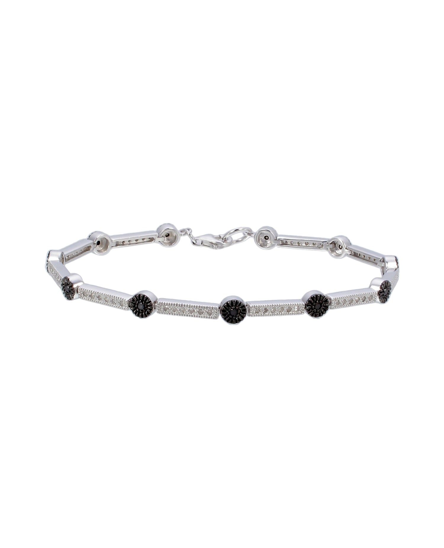 0.55 cttw Black And White Diamond Tennis Bracelet .925 Sterling Silver Rhodium