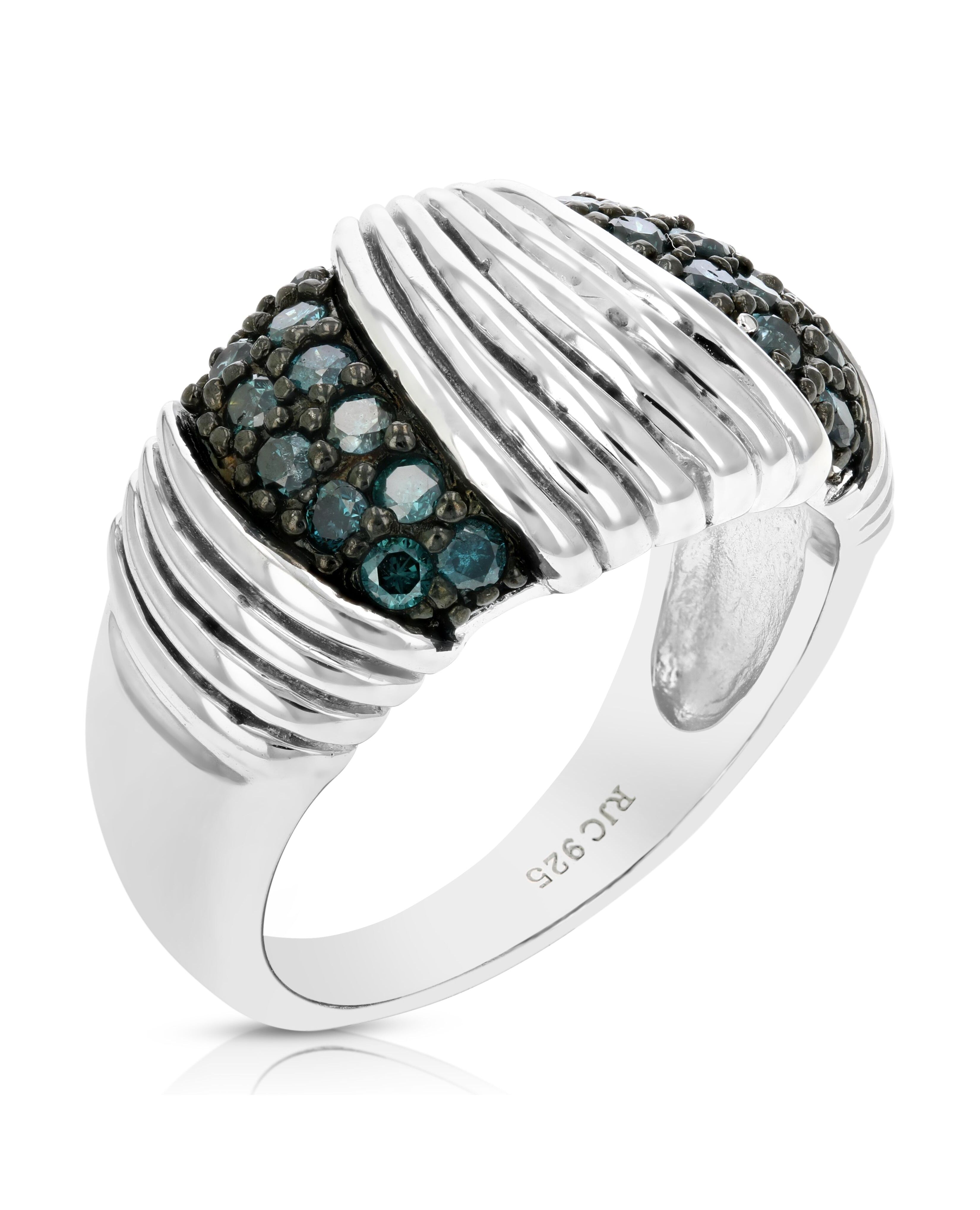 0.55 cttw Blue Diamond Ring .925 Sterling Silver with Rhodium Plating