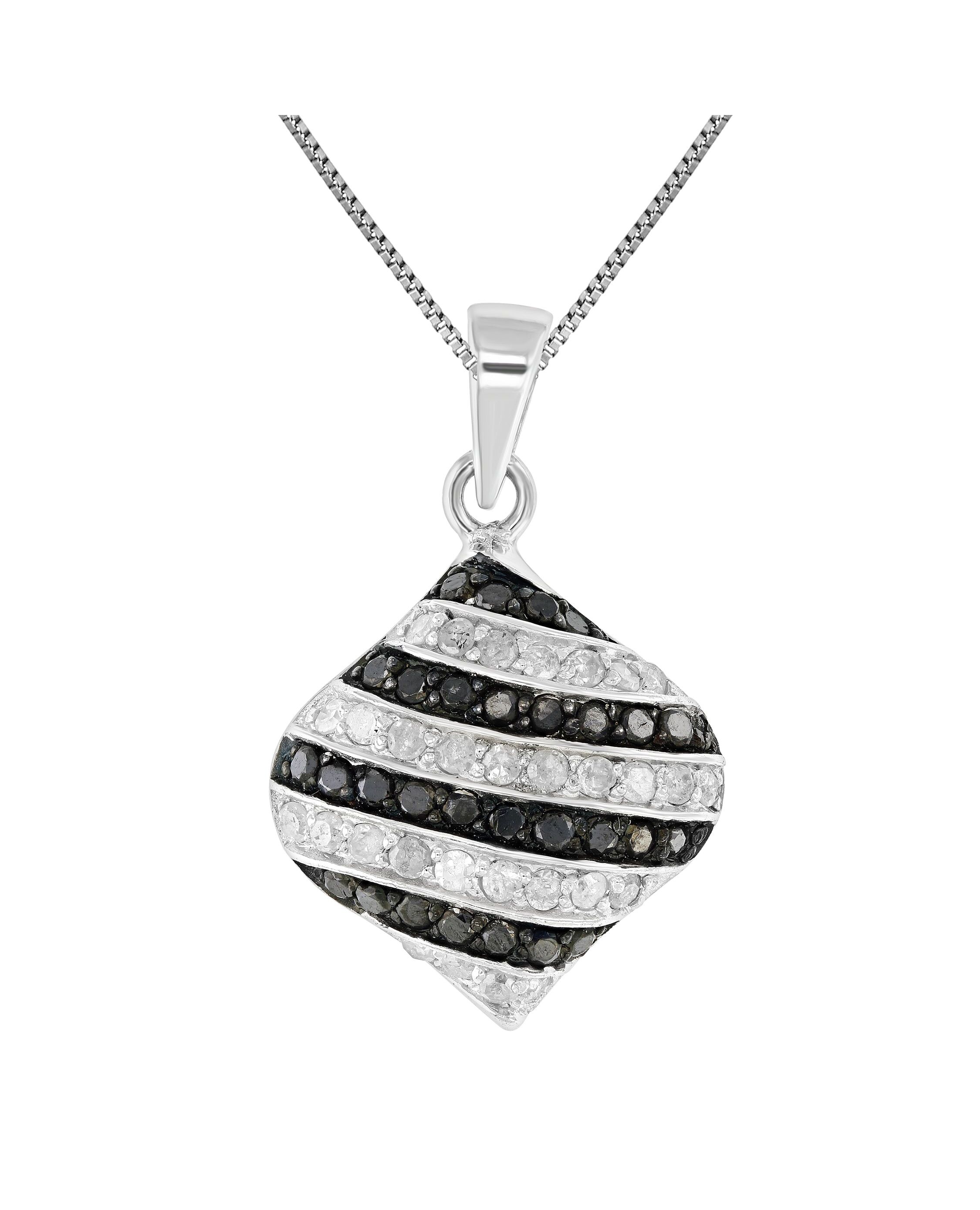 0.90 cttw Black and White Diamond Pendant .925 Sterling Silver And 18 Inch Chain