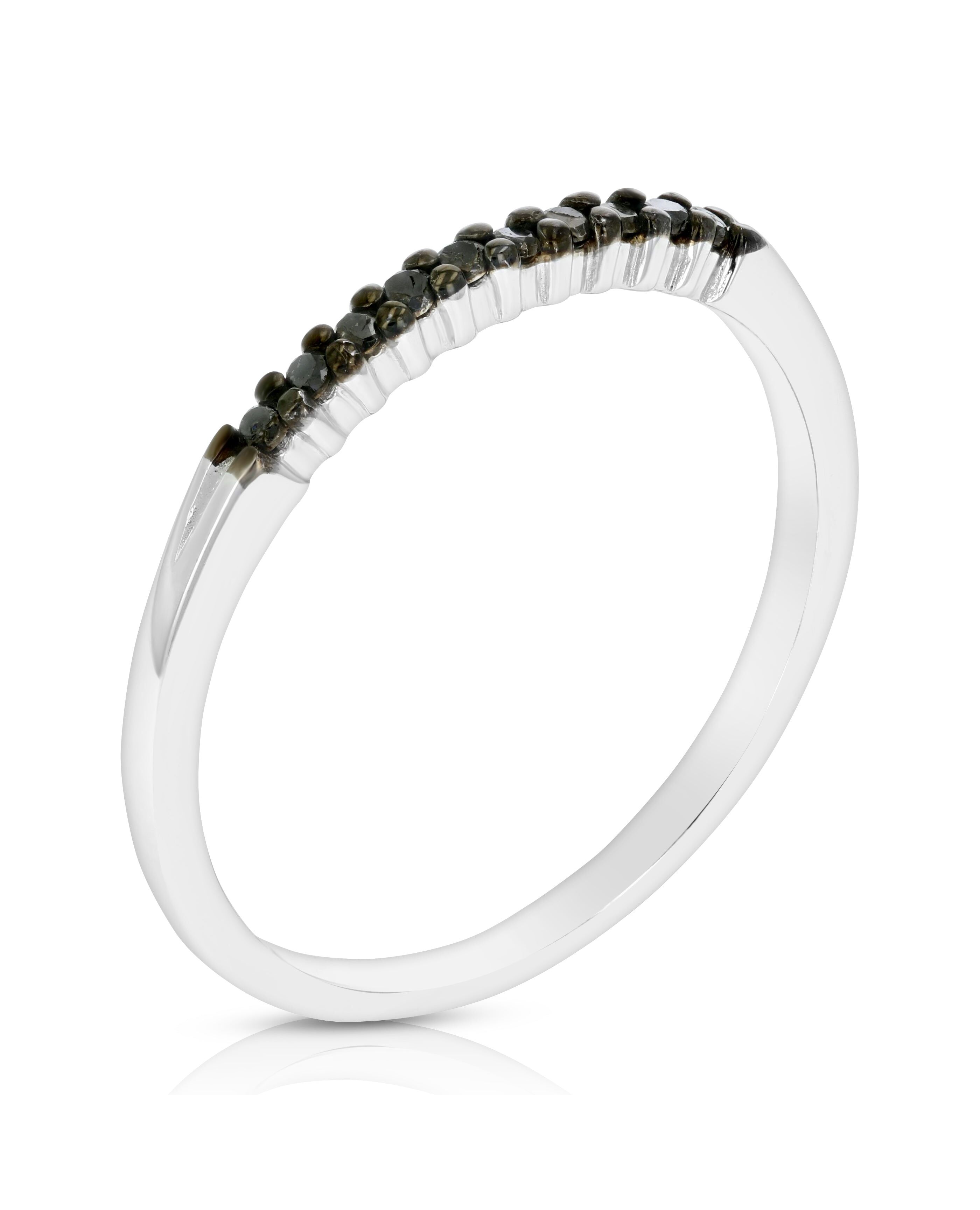 1/10 cttw Black Diamond Ring Wedding Band .925 Sterling Silver 10 Stones Prong