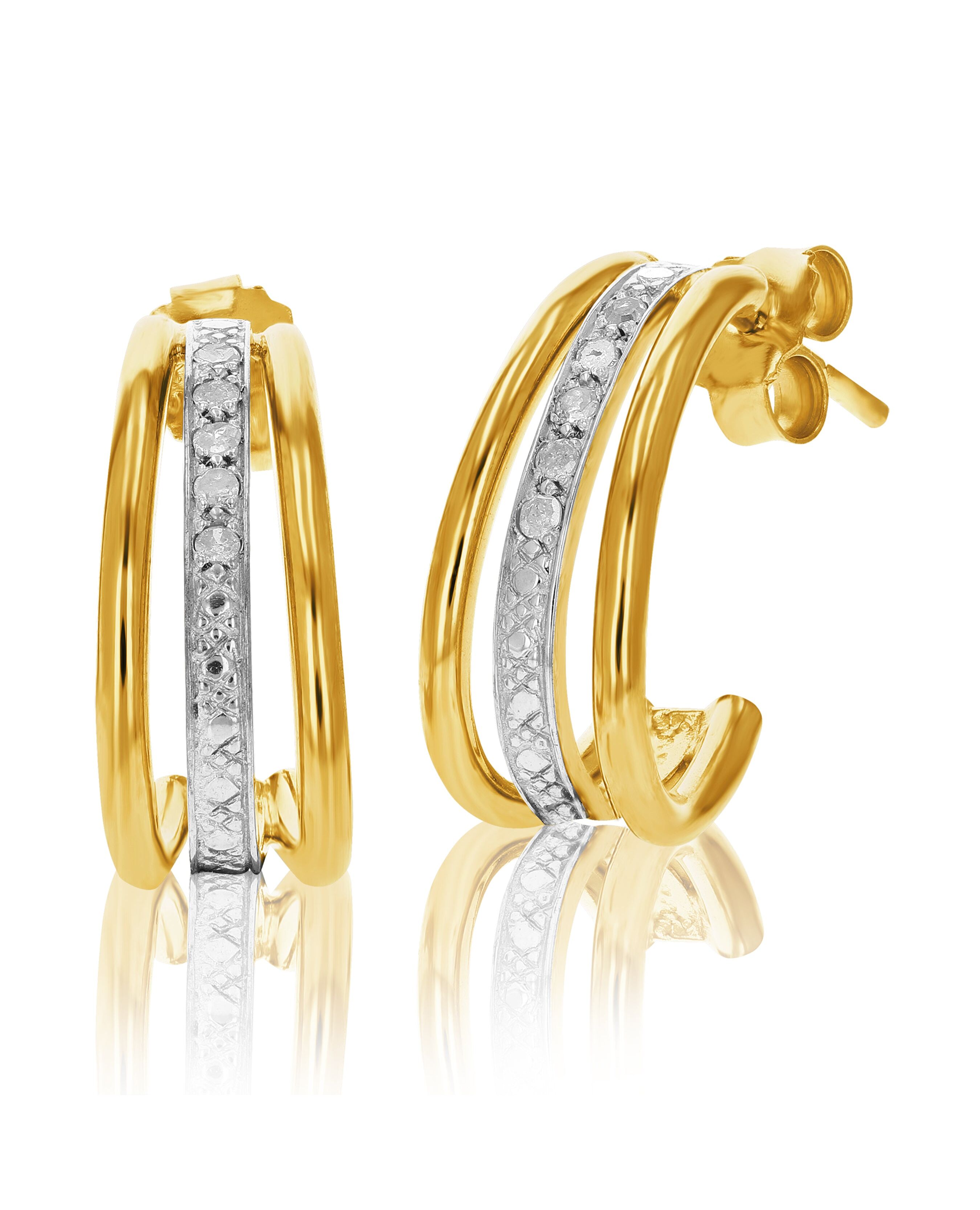 1/10 cttw Diamond Hoop Earrings Yellow Gold Plated Over Sterling Silver