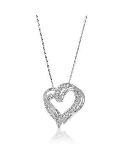 1/10 cttw Lab Grown Round Diamond Heart Pendant Necklace .925 Sterling Silver 2/3 Inch With 18 Inch Chain