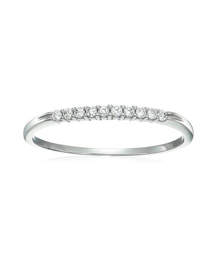 Ships within 1 dayLovely, elegant 1/10 cttw diamond wedding band in 10k white or yellow gold. The 10 sparkling diamonds are natural diamonds set in a shared prong setting. The ring weighs 0.9 gram. This ring is available in multiple sizes. Gift box is included with this bridal ring.This style can be made in additional ring sizes and metal. Please contact us.Stone Type - Natural DiamondMetal - 10K White or Yellow GoldDiamond Carat Weight - 1/10 cttw (0.10 cttw)Diamond Cut - RoundDiamond Color - I-JDiamond Clarity - I1-I2Diamonds - 10Vir Jewels 10K White Gold Wedding Band For Female AdultBirthstone Month - April