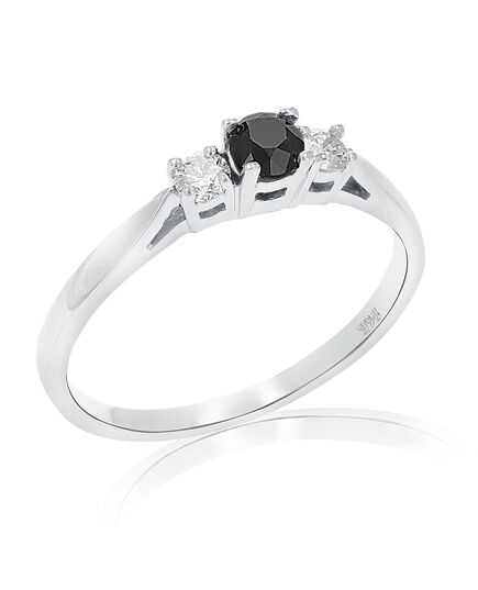 1/2 cttw 3 Stone Black and White Diamond Engagement Ring 14K White Gold