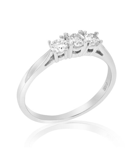 1/2 cttw 3 Stone Diamond Engagement Ring 14K White Gold Round Bridal Wedding