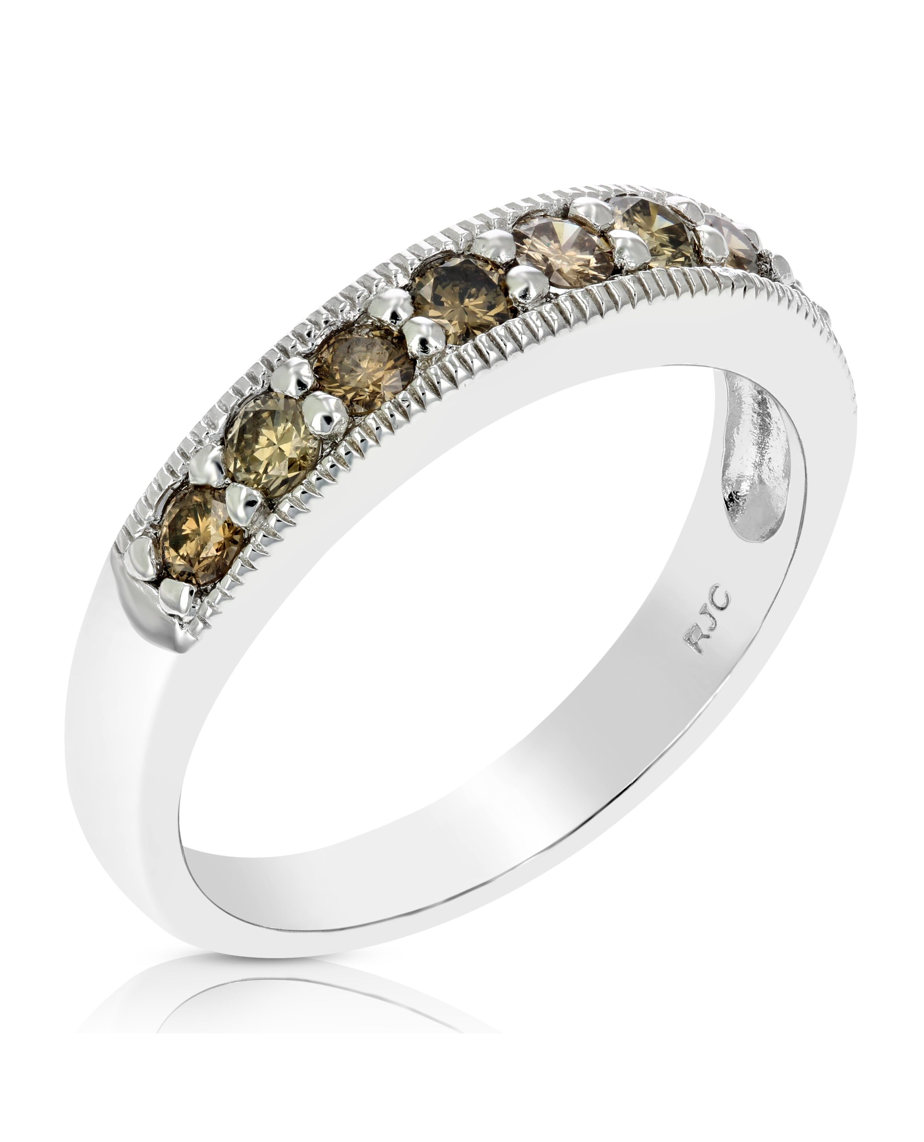 1/2 cttw Champagne Diamond Wedding Band Ring with Milgrain .925 Sterling Silver