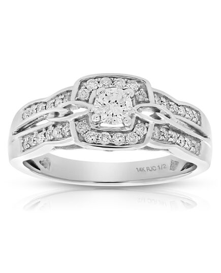 1/2 cttw Diamond Engagement Ring 14K White Gold Cushion Shape Halo Bridal Ring