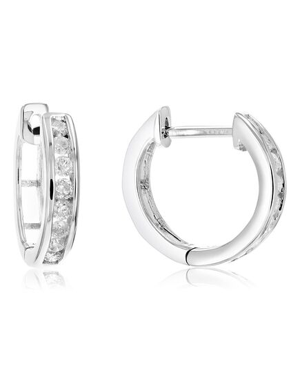 1/2 cttw Diamond Hoop Earrings .925 Sterling Silver 16 Stones Dangle 1/2 Inch