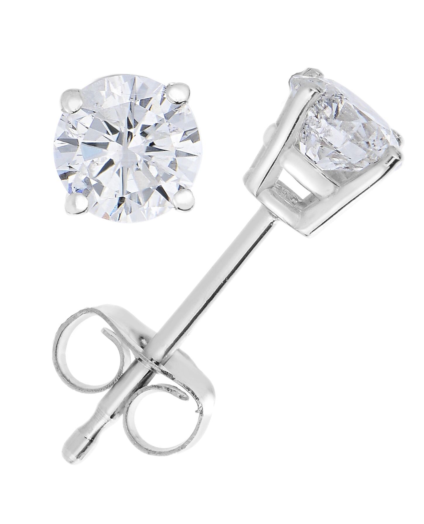 1/2 cttw Diamond Stud Earrings 14K White Gold Round Push Backs 4 Prong