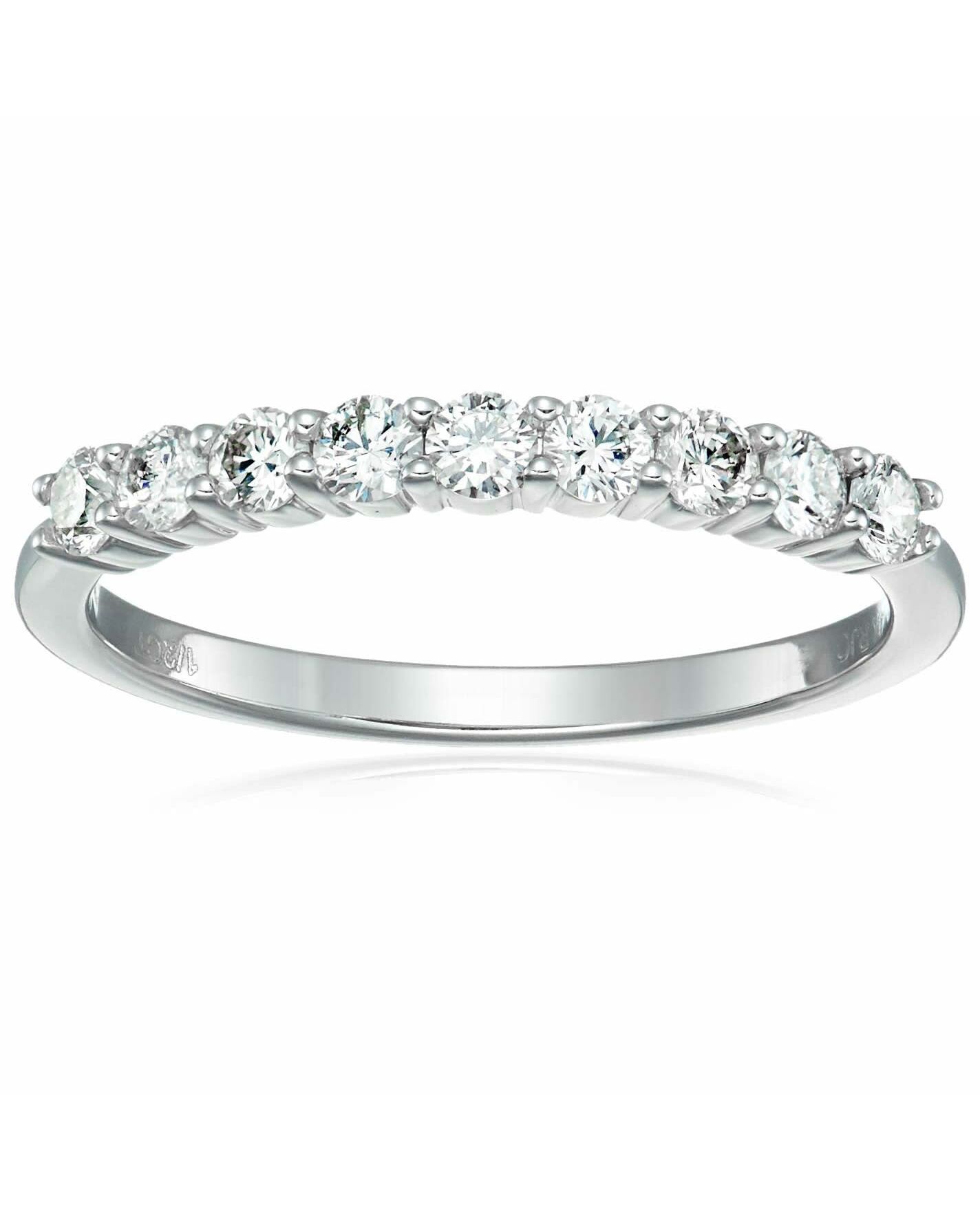 1/2 cttw Diamond Wedding Band 14K White Gold 9 Stones Prong Set Round