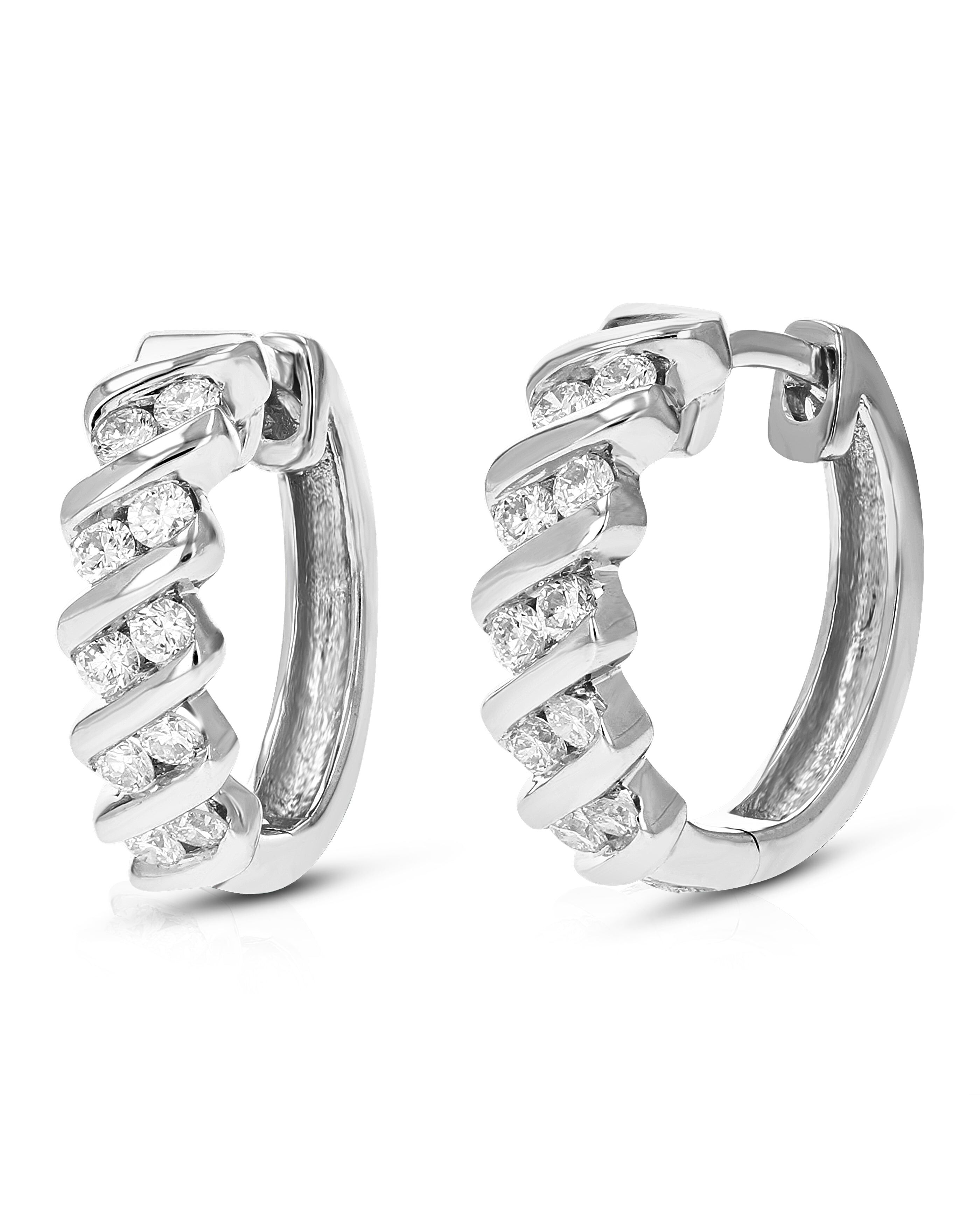 1/2 cttw Round Cut Lab Grown Diamond Hoop Earrings Made with .925 Sterling Silver Channel Setting 2/3 Inch