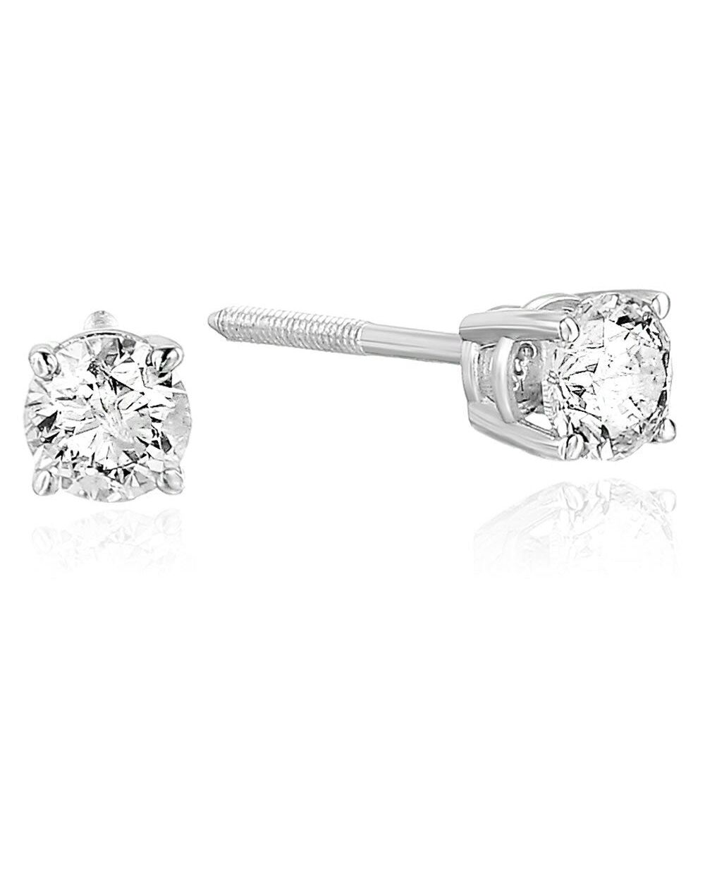 1/2 cttw SI2-I1 Certified Diamond Stud Earrings 14K White or Yellow Gold Round with Screw Backs