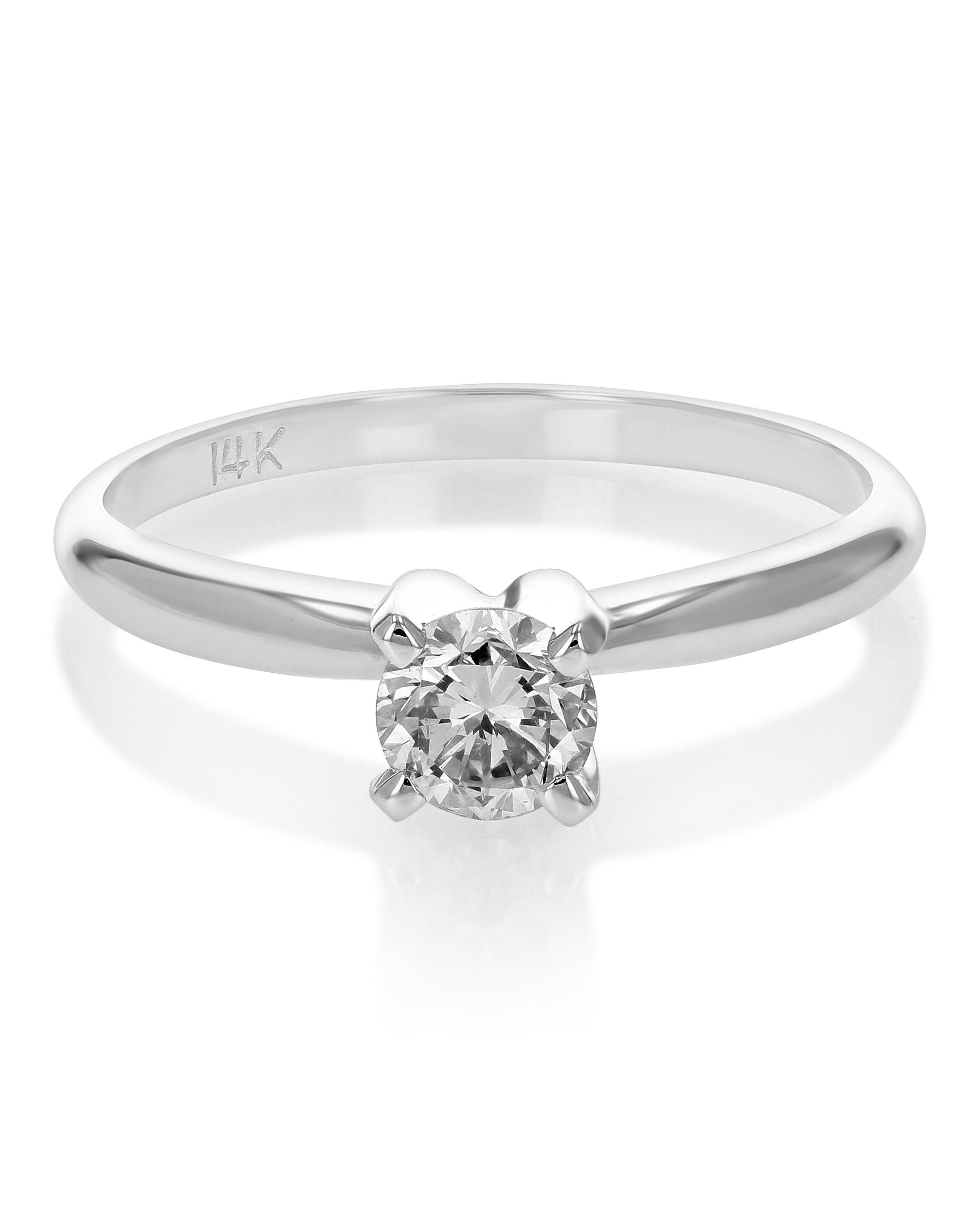 1/2 cttw VS2 Diamond Solitaire Engagement Ring 14K White Gold Round Prong
