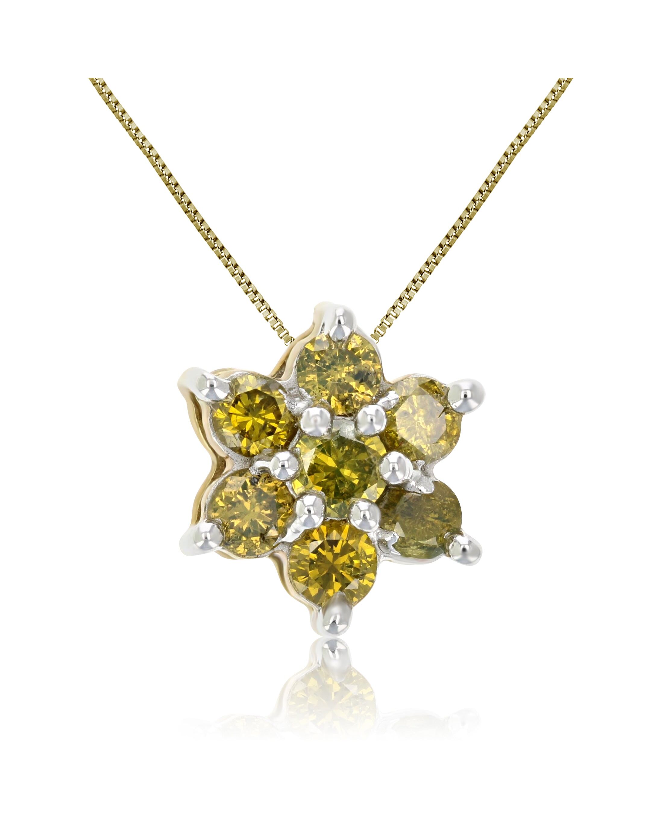 1/2 cttw Yellow Diamond Cluster Composite Pendant Necklace 10K Yellow Gold
