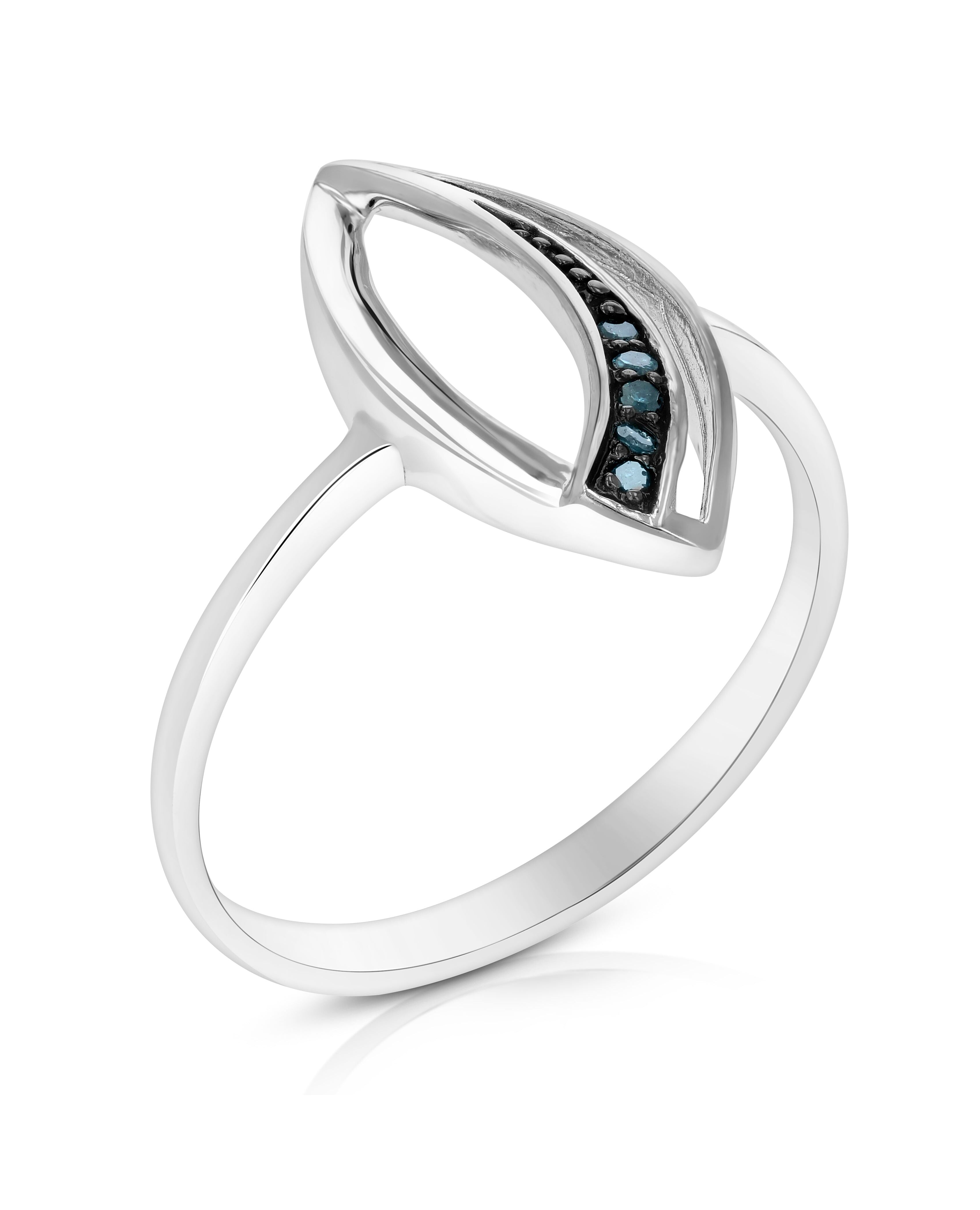1/20 cttw Blue Diamond Marquise Ring .925 Sterling Silver with Rhodium
