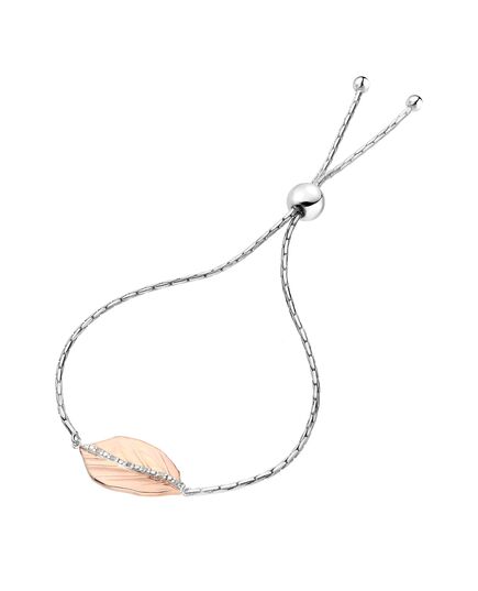 1/20 cttw Diamond Bolo Bracelet Rose Gold Plated Over .925 Sterling Silver Leaf