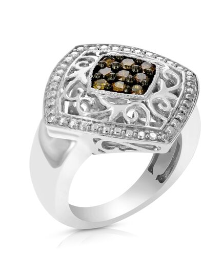 1/3 cttw Champagne Diamond Ring .925 Sterling Silver with Rhodium Plating
