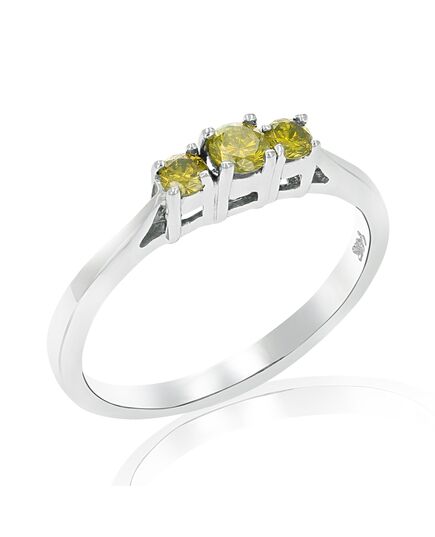 1/4 cttw 3 Stone Yellow Diamond Engagement Ring in 14K White Gold Round