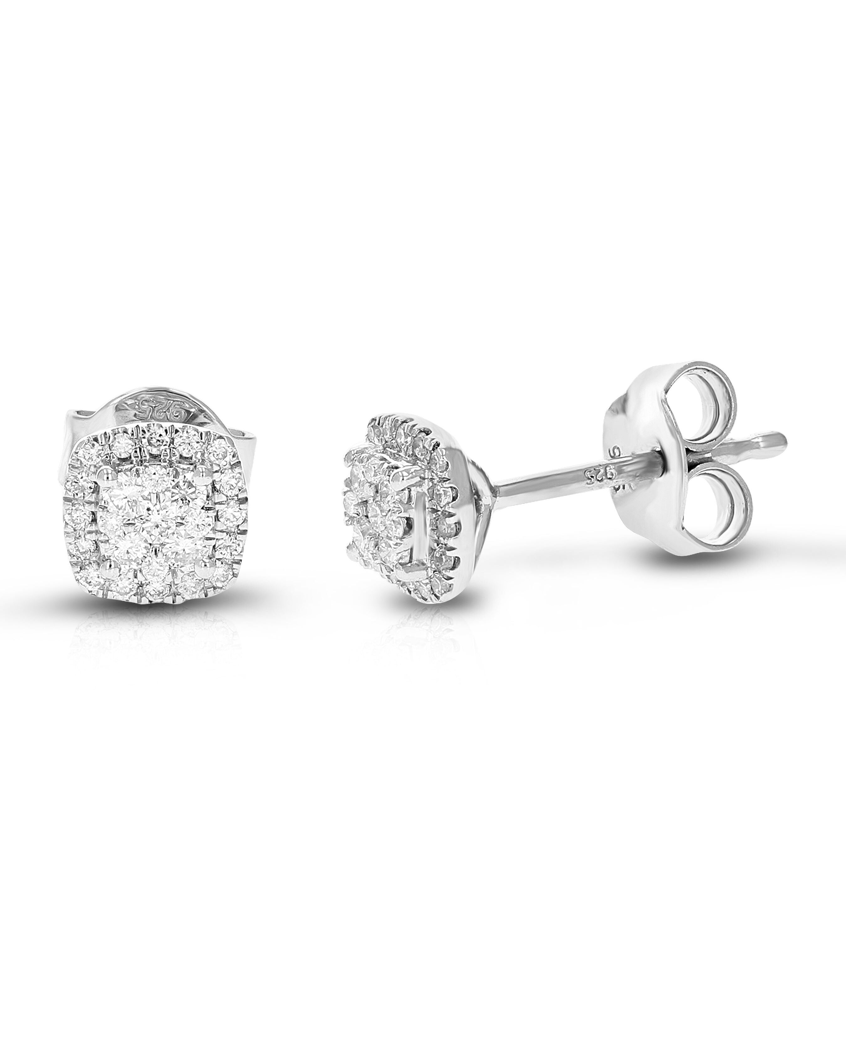 1/4 cttw 50 Stones Round Lab Grown Diamond Studs Earrings .925 Sterling Silver Prong Set Square Shape