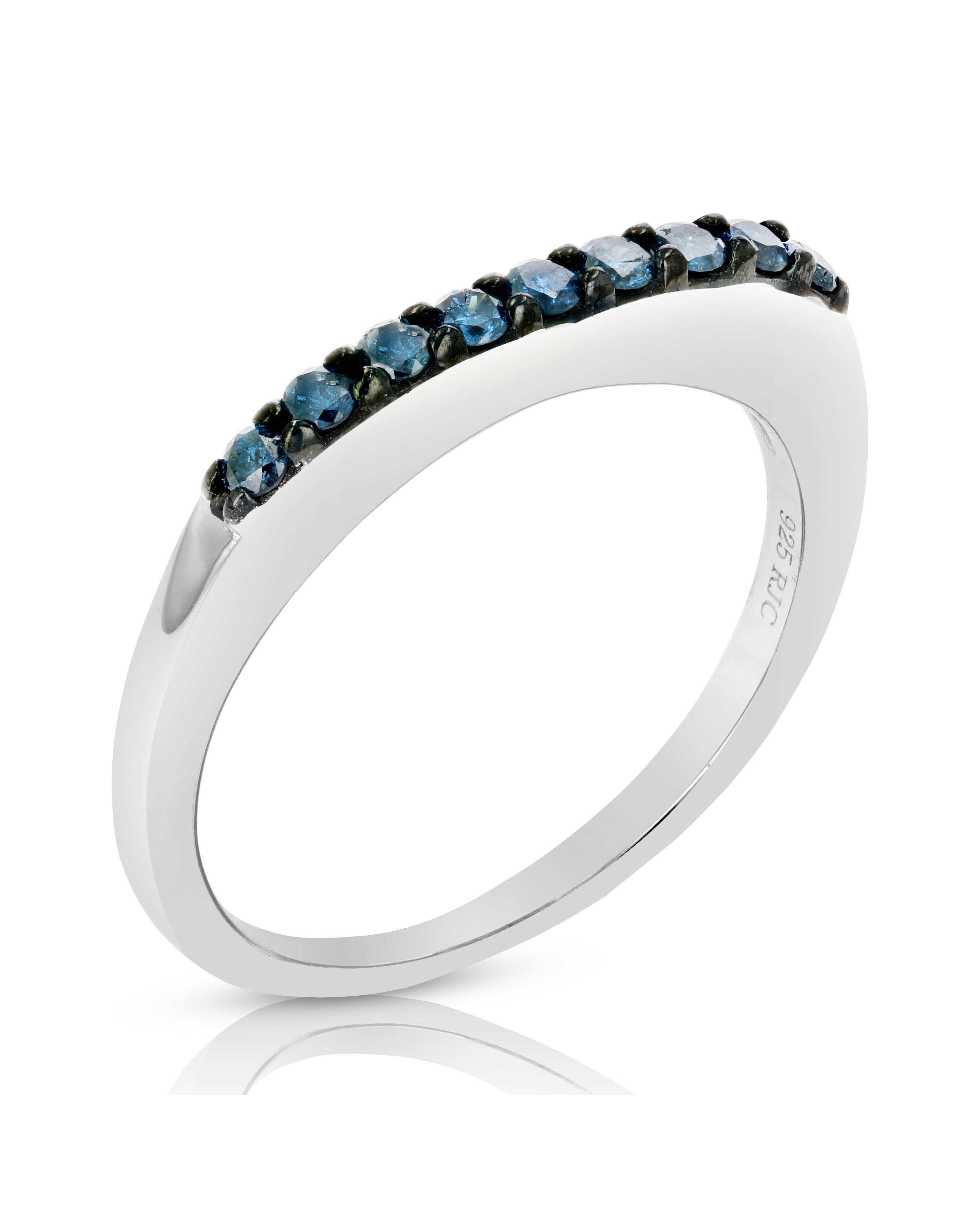 1/4 cttw Blue Diamond Ring Wedding Band .925 Sterling Silver Prong Set Round