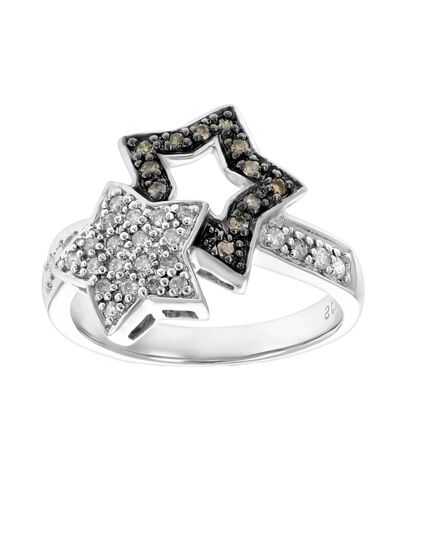 1/4 cttw Champagne and White Diamond Fashion Star Ring 14K White Gold