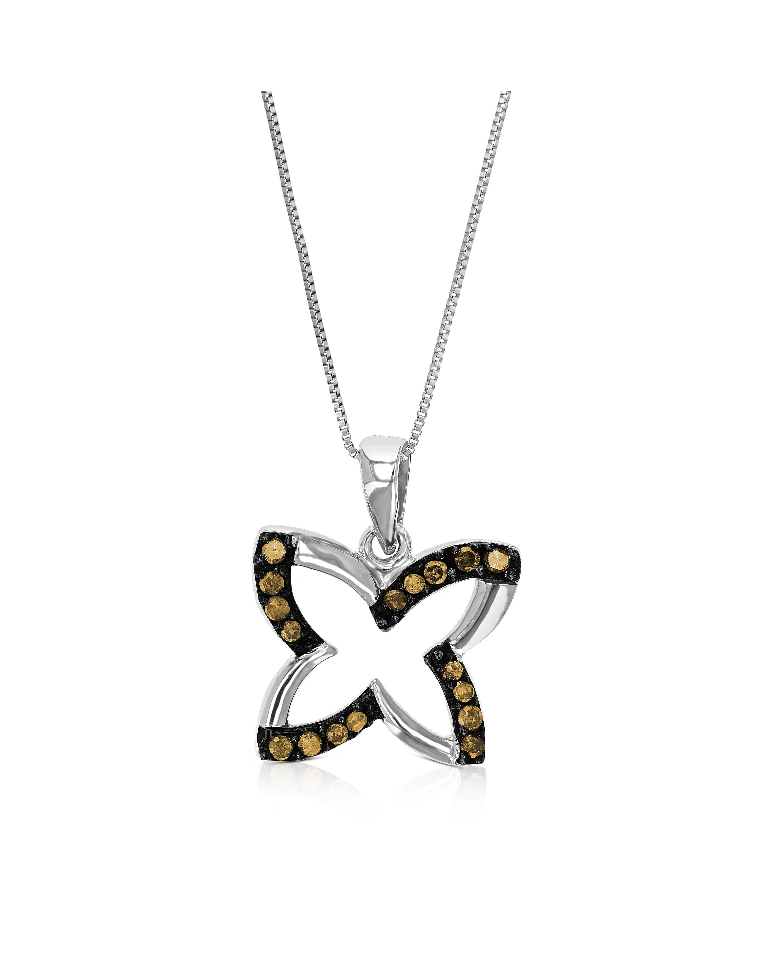 1/4 cttw Champagne Diamond Pendant Necklace .925 Sterling Silver With Rhodium