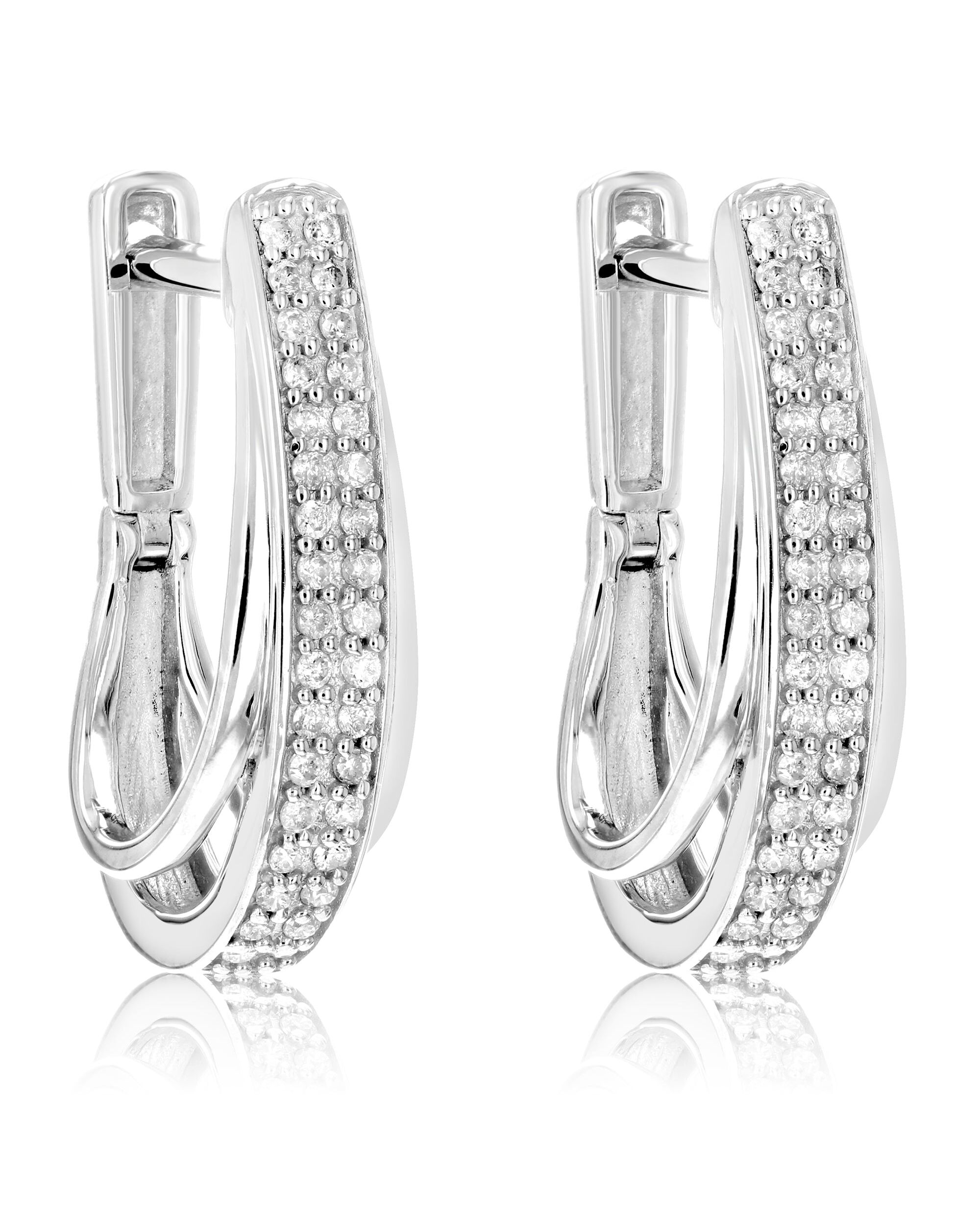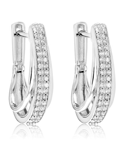 1/4 cttw Diamond Hoop Earrings .925 Sterling Silver 60 Stones Dangle 3/4 Inch
