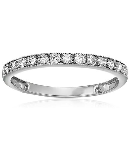Ships within 1 dayLovely, elegant 1/4 cttw diamond wedding band in 14k white or yellow gold. The 12 to 14 (depending on ring size) sparkling diamonds are natural diamonds set in a prong setting. The ring weighs 1.3 grams. This ring is available in multiple sizes. Gift box is included with this bridal ring.This style can be made in additional ring sizes and metal. Please contact us.Stone Type - Natural DiamondMetal - 14K White or Yellow GoldDiamond Carat Weight - 1/4 cttw (0.25 cttw)Diamond Cut - RoundDiamond Color - I-JDiamond Clarity - I1-I2Diamonds - 13Vir Jewels 14K White Gold Wedding Band For Female AdultBirthstone Month - April