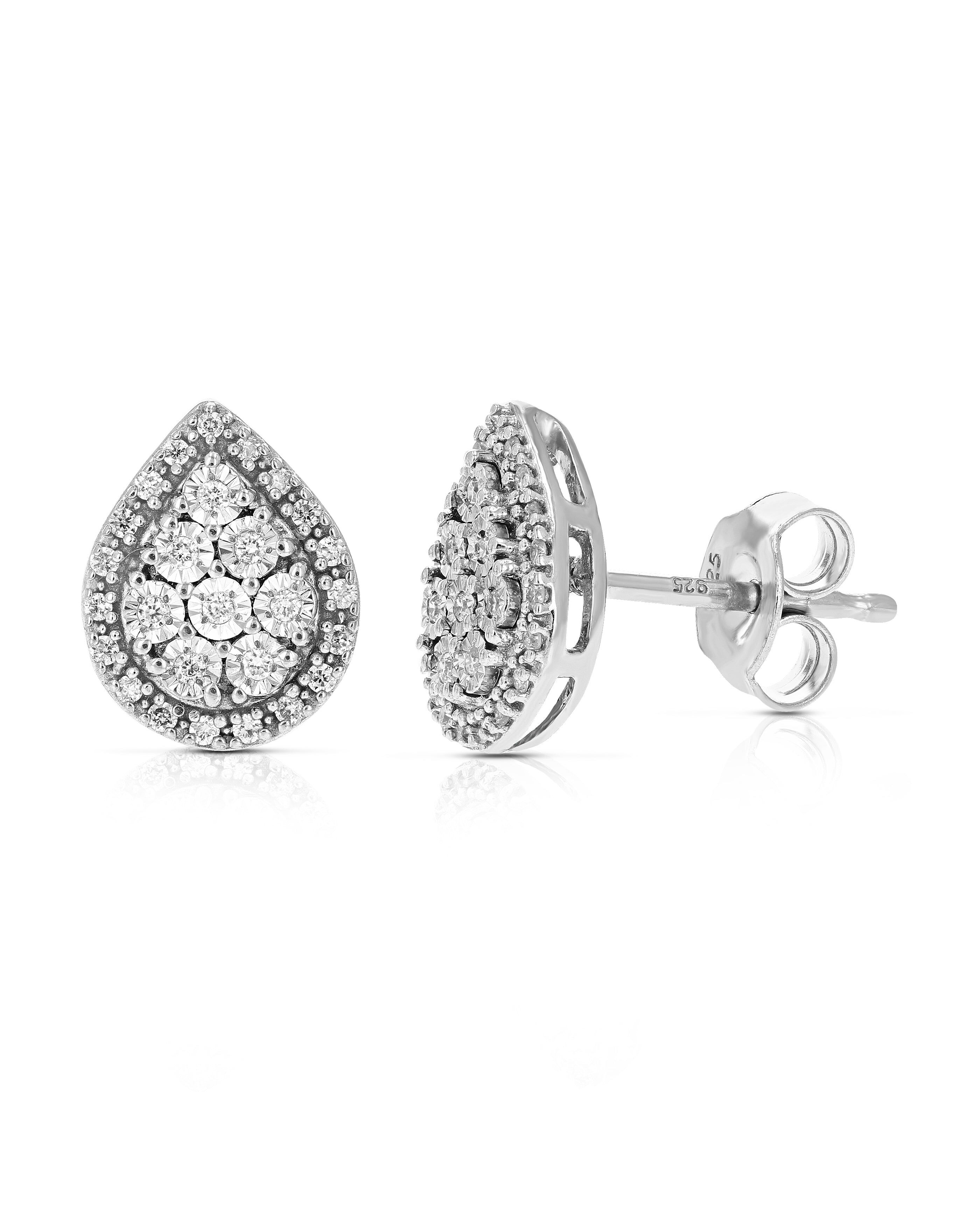 1/5 cttw Lab Grown Diamond Stud Earrings Drop Shape Round Cut Prong Set on .925 Sterling Silver