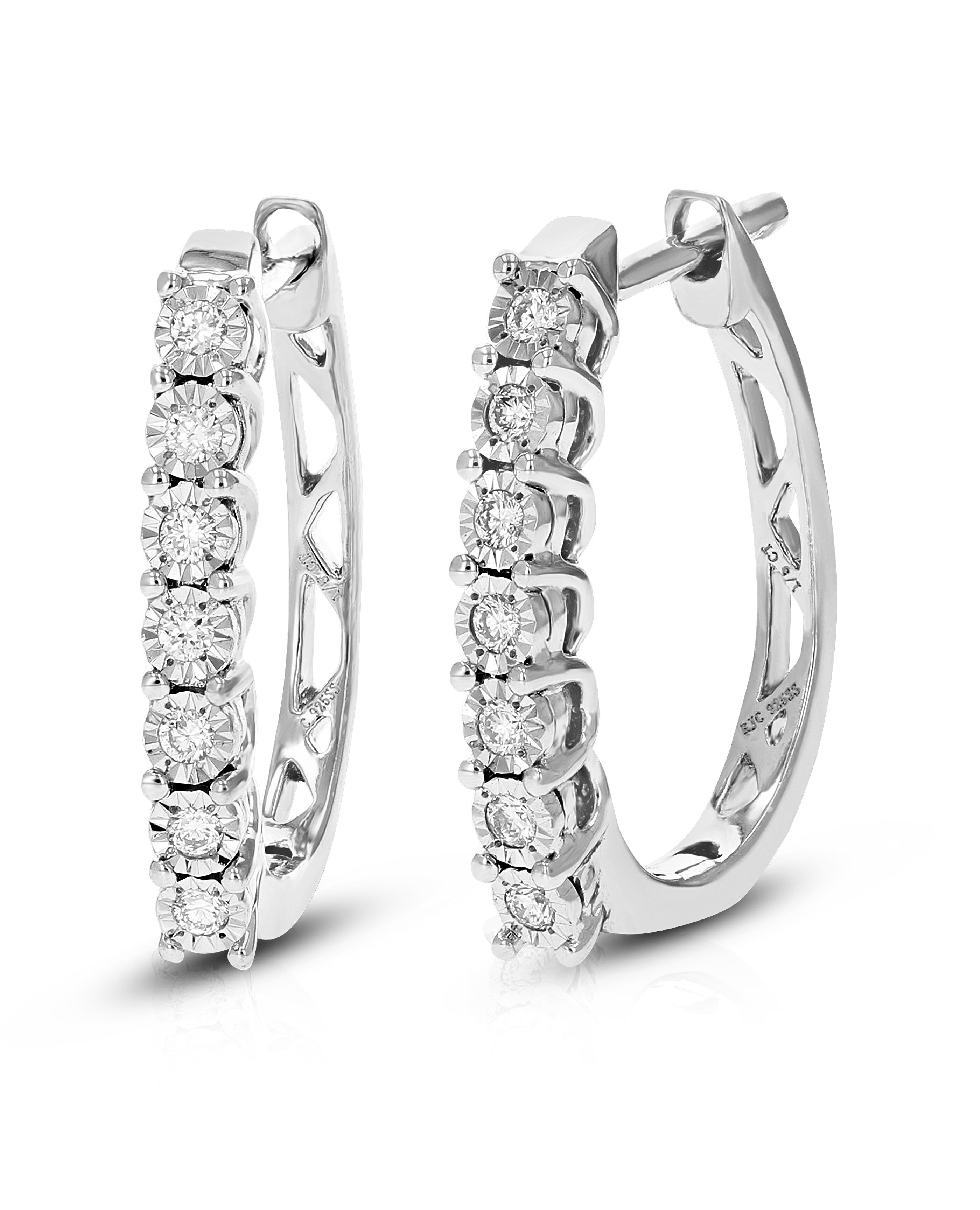 1/5 cttw Round Lab Grown Diamond Hoop Earrings Made in .925 Sterling Silver Prong Set