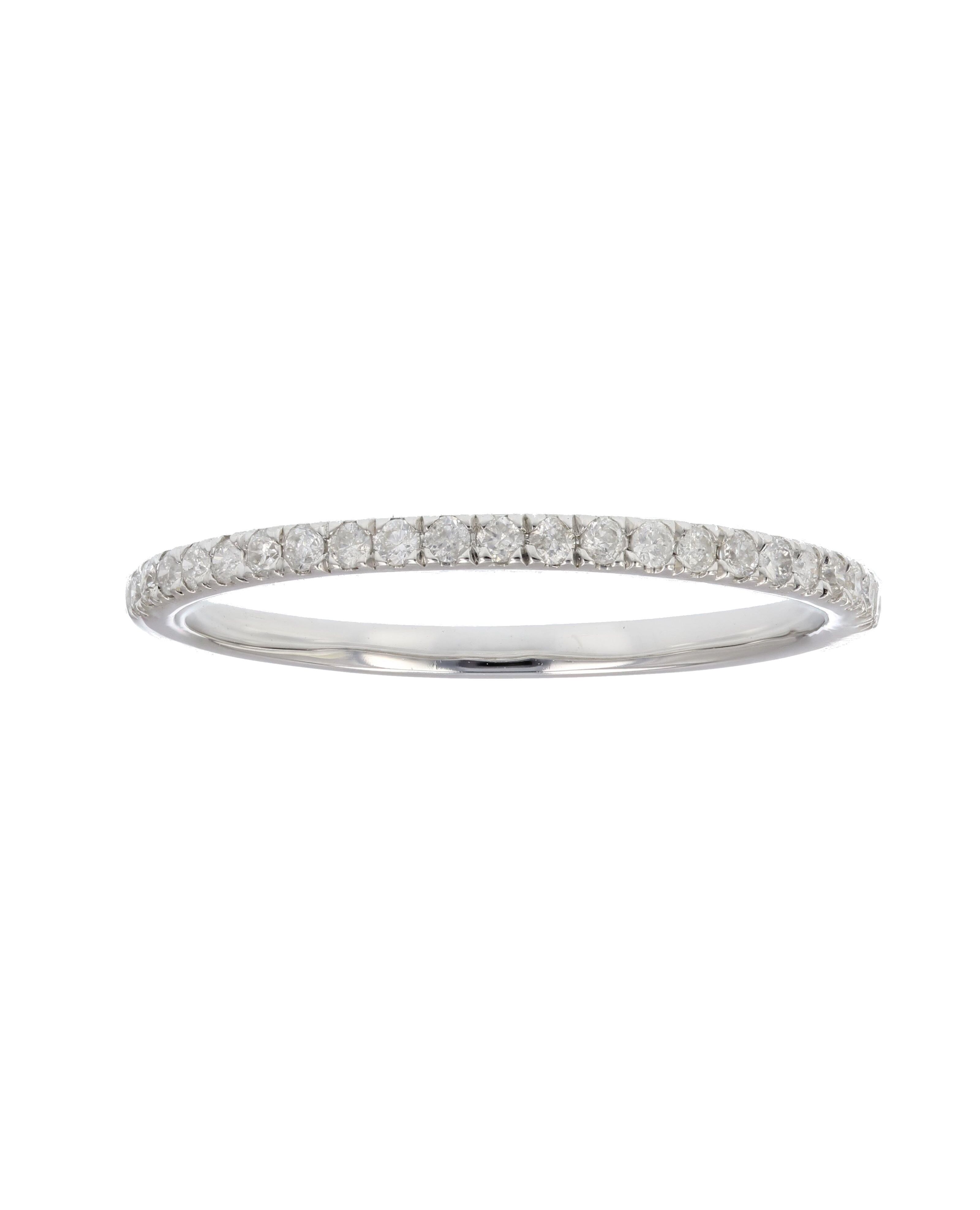 Ships within 1 dayLovely, elegant 1/6 cttw diamond wedding band in 10k white or yellow gold. The 20 to 22 (depending on ring size) sparkling diamonds are natural diamonds set in a pave setting. The ring weighs 0.7 gram. This ring is available in multiple sizes. Gift box is included with this bridal ring.This style can be made in additional ring sizes and metal. Please contact us.Stone Type - Natural DiamondMetal - 10K White or Yellow GoldDiamond Carat Weight - 0.16 cttwDiamond Cut - RoundDiamond Color - I-JDiamond Clarity - I1-I2Diamonds - 22Vir Jewels 10K White Gold Wedding Band For Female AdultBirthstone Month - April