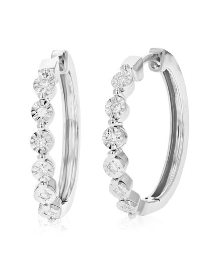 1/8 cttw Round Lab Grown Diamond Hoop Earrings .925 Sterling Silver Prong Set 3/4 Inch