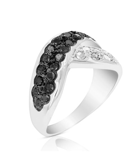 1 cttw Black and White Diamond Ring .925 Sterling Silver with Rhodium