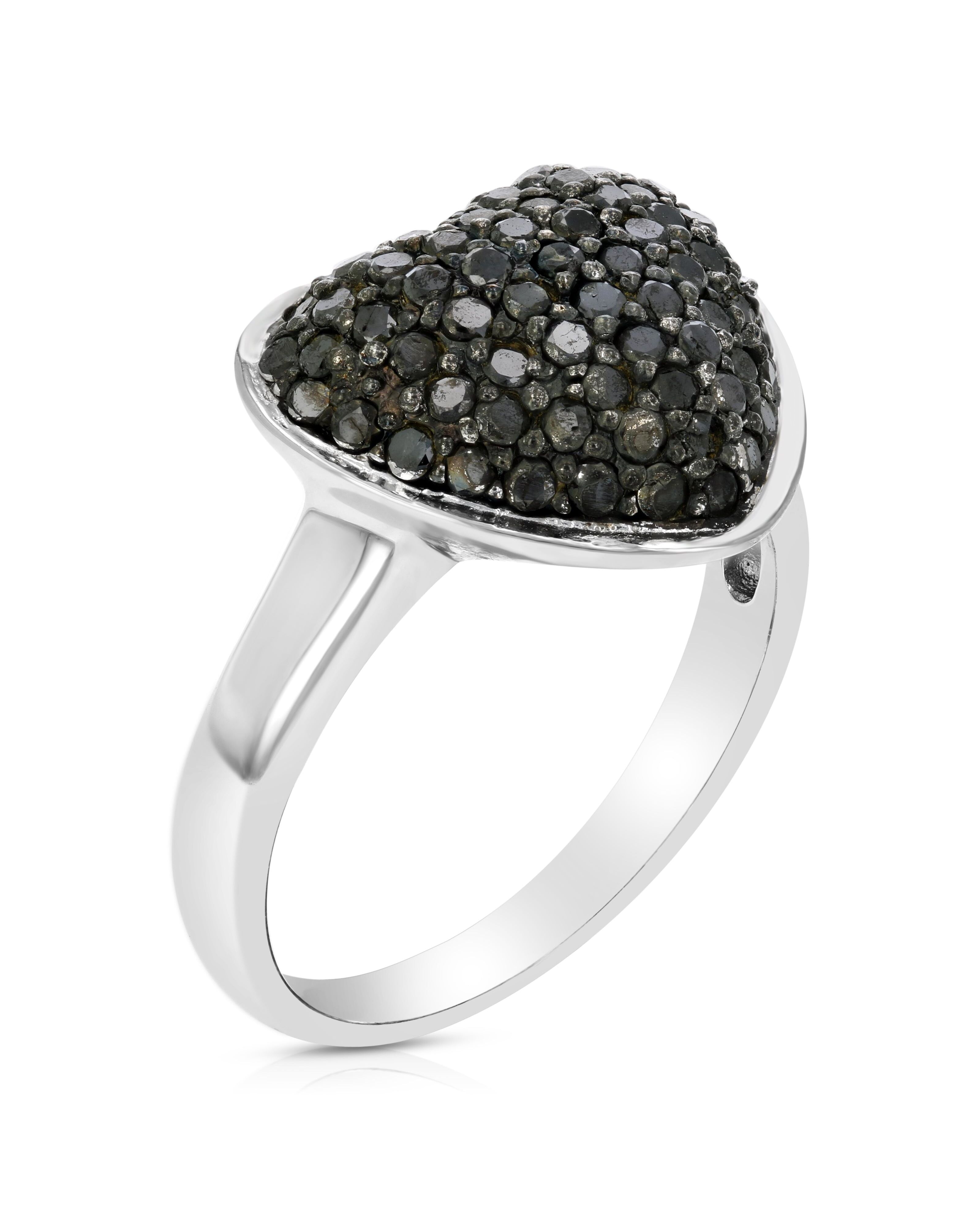 1 cttw Black Diamond Heart Ring .925 Sterling Silver with Rhodium Plating