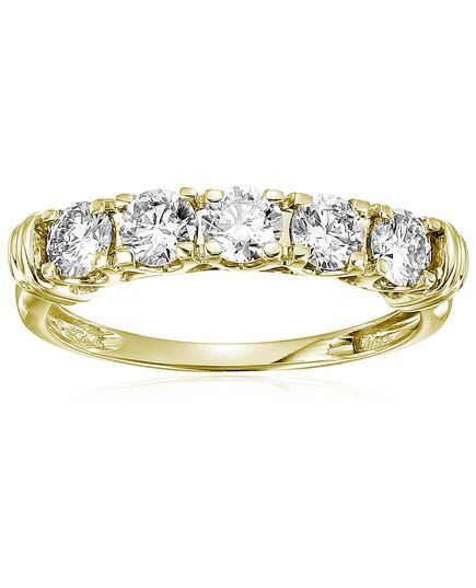 Ships within 1 dayElegant 1 cttw 5 stone diamond ring 14k white or yellow gold sparkling natural diamonds set in a prong setting. The diamonds are SI2-I1 clarity and I-J color. The ring weighs 1.7 grams. Each ring is tagged by a unique number that matches the certificate. Certificate and a gift box are included with this bridal ring.This style can be made in additional ring sizes and metal. Please contact us.Stone Type - Natural DiamondMetal - 14K White or Yellow GoldDiamond Carat Weight - 1 cttwDiamond Cut - RoundDiamond Color - I-JDiamond Clarity - SI2-I1Diamonds - 5AGS Certified, Certificate IncludedVir Jewels 14K White or Yellow Gold Engagement Ring For Female AdultBirthstone Month - April
