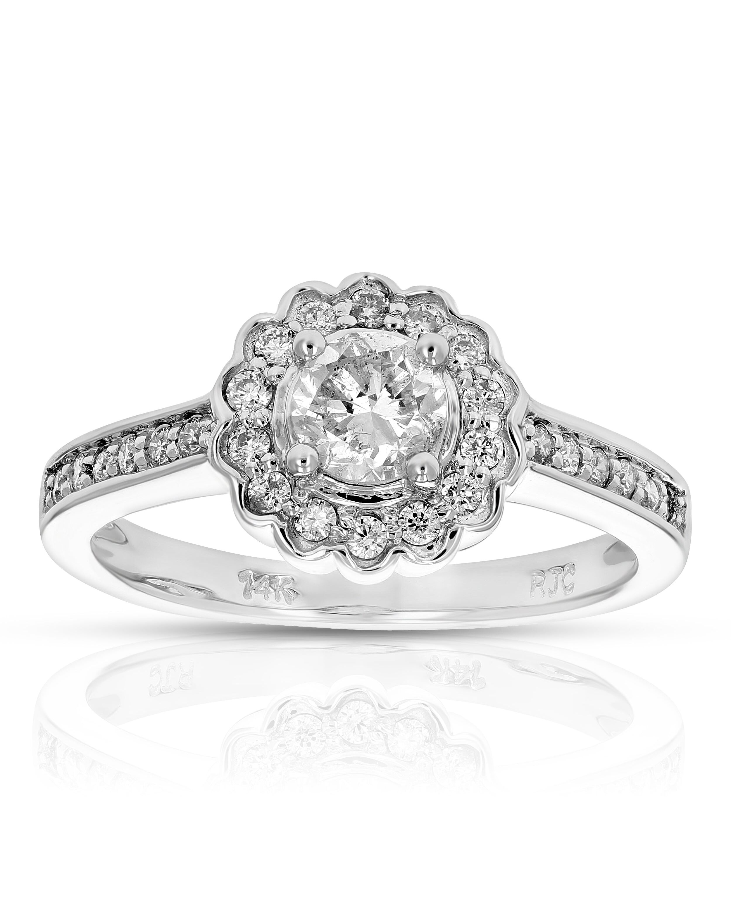 1 cttw Cluster Composite Diamond Engagement Ring 14K White Gold Round