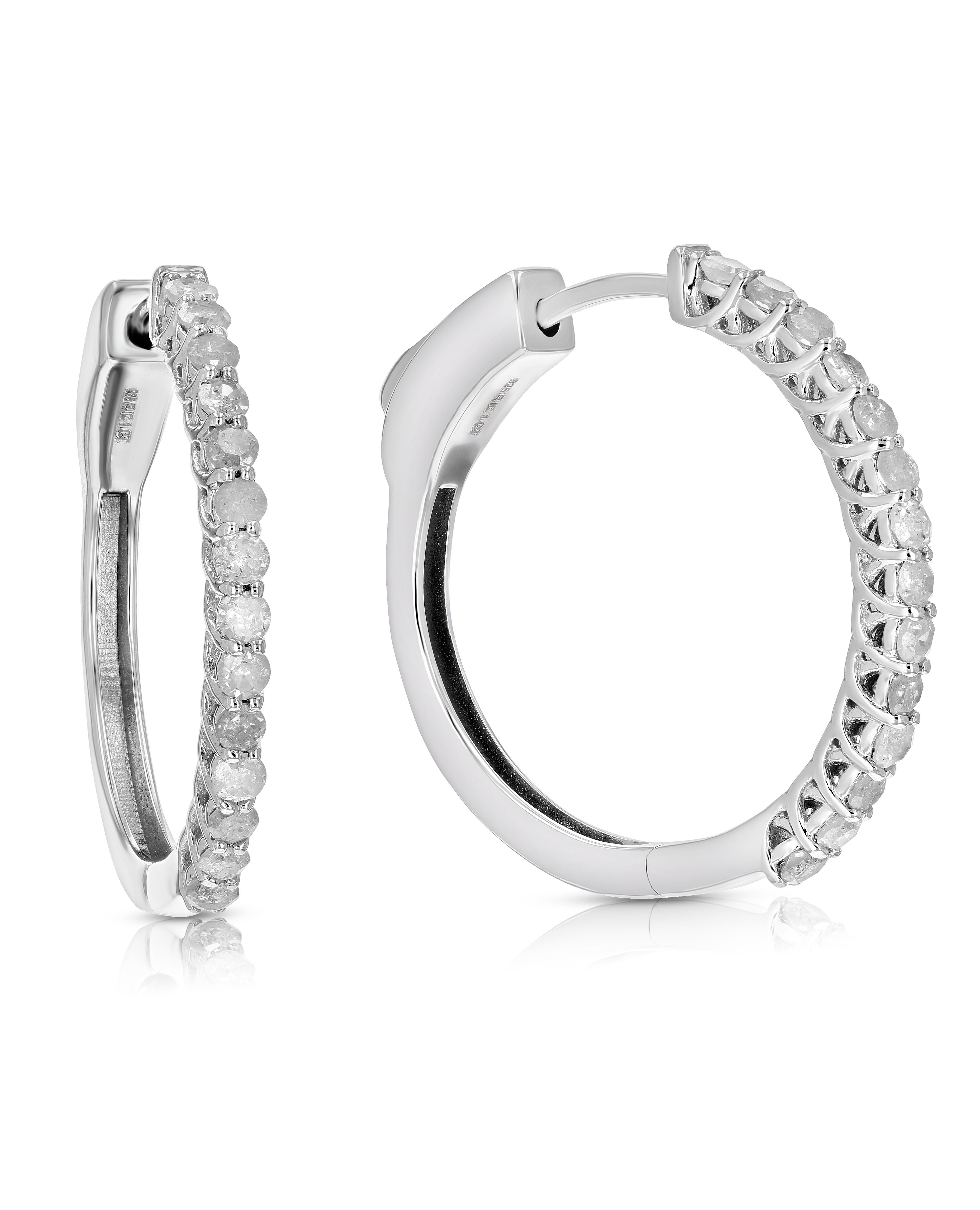 1 cttw Diamond Hoop Earrings .925 Sterling Silver 28 Stones Dangle 1 Inch