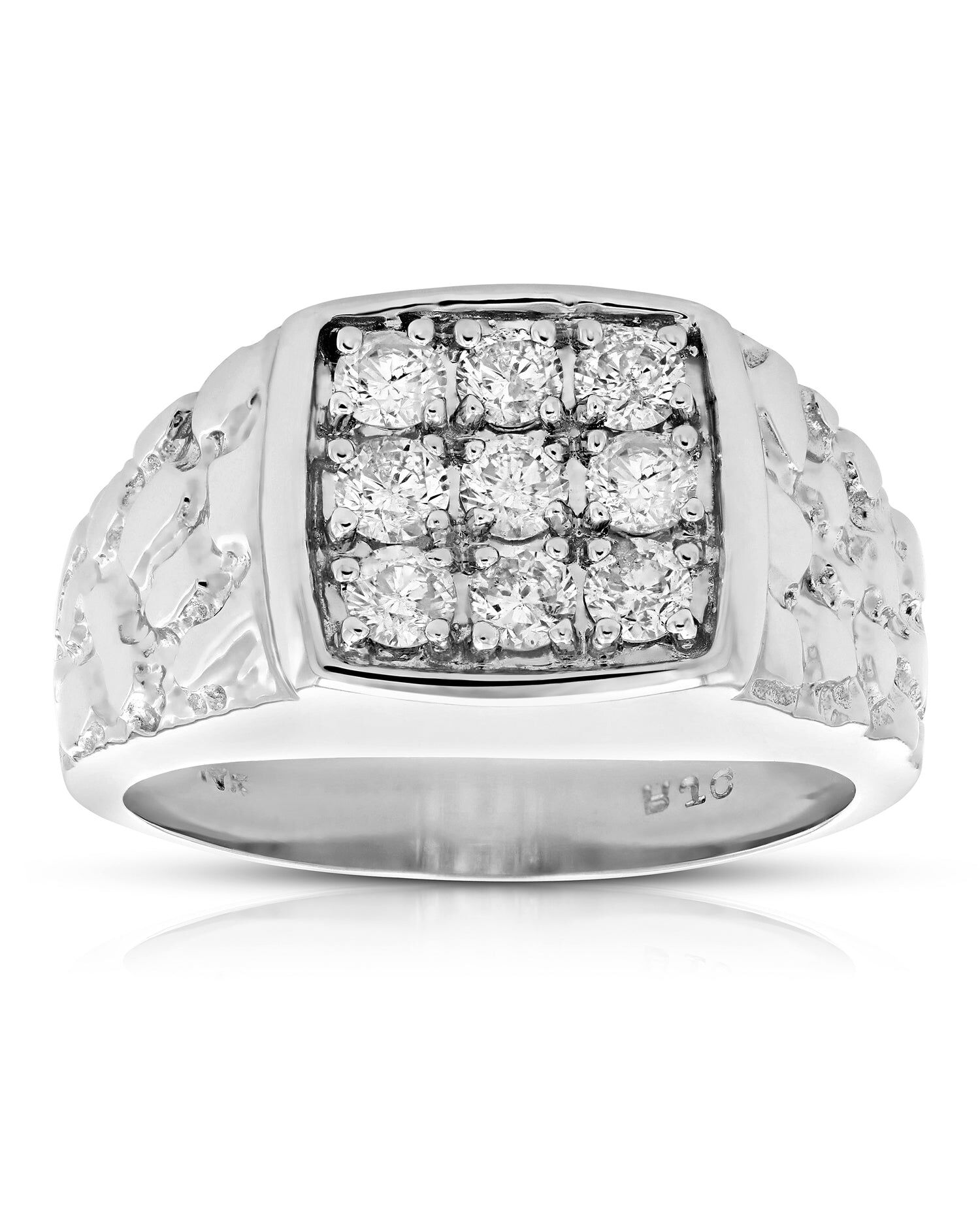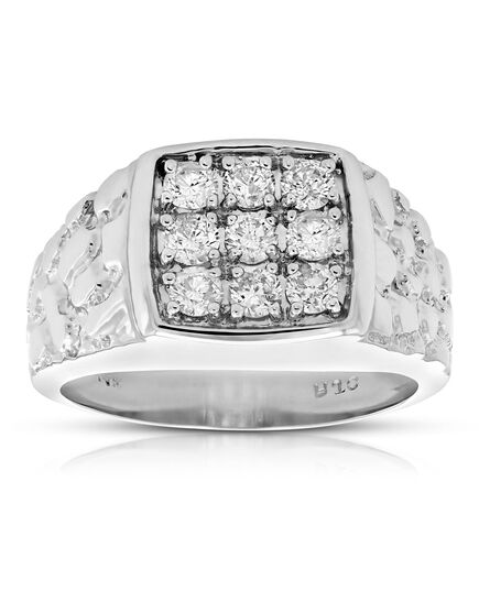 Ships within 1 dayStunning, elegant 1 cttw men's diamond ring in 14k white gold. The sparkling diamonds are natural diamonds. Gift box is included with purchase of this ring.This style can be made in additional ring sizes and metal. Please contact us.Stone Type - Natural DiamondMetal - 14K White GoldDiamond Carat Weight - 1 cttwDiamond Cut - RoundDiamond Color - I-JDiamond Clarity - I1-I2Vir Jewels 14K White Gold Ring For Male AdultBirthstone Month - April