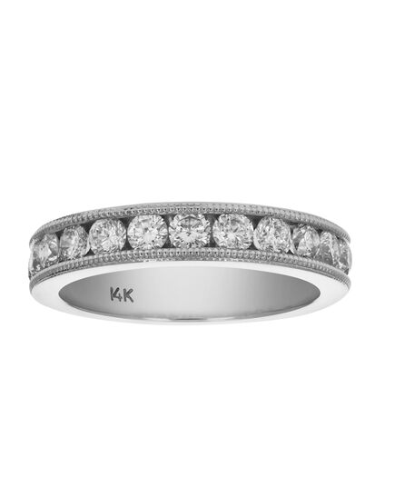 1 cttw SI2-I1 14K White Gold Machine Set With Milgrain Diamond Wedding Band