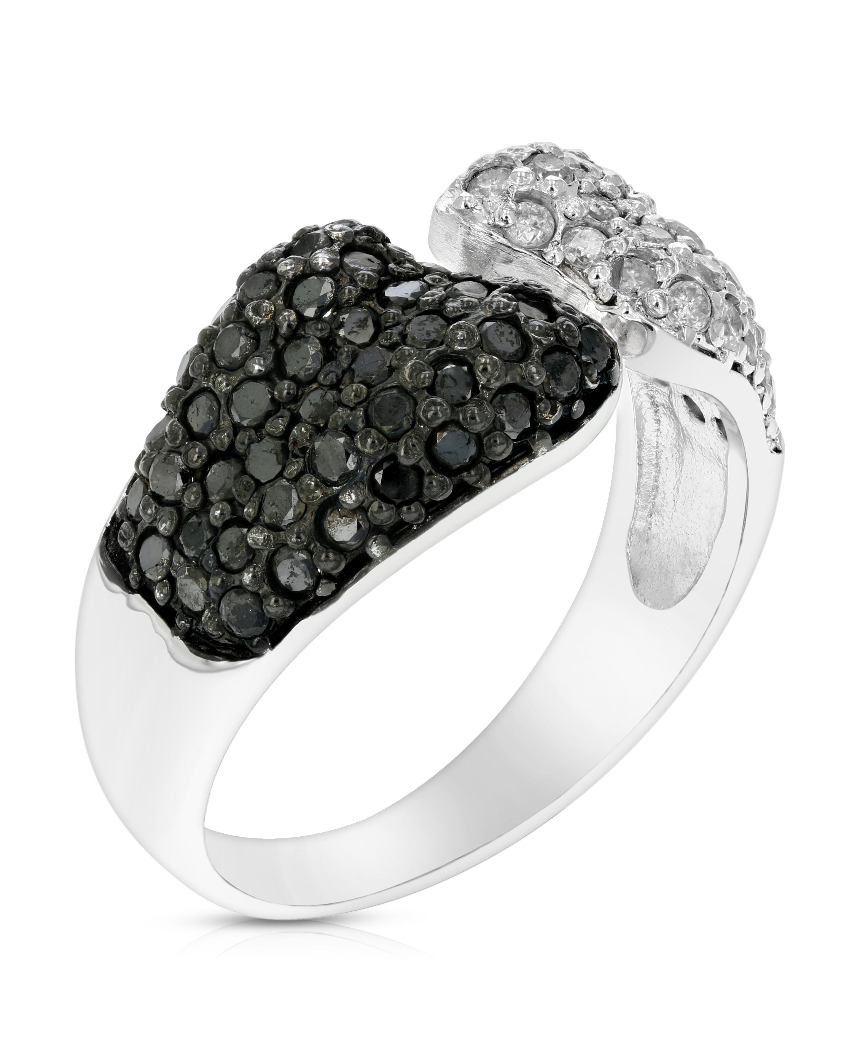 1.15 cttw Black and White Diamond Ring .925 Sterling Silver with Rhodium