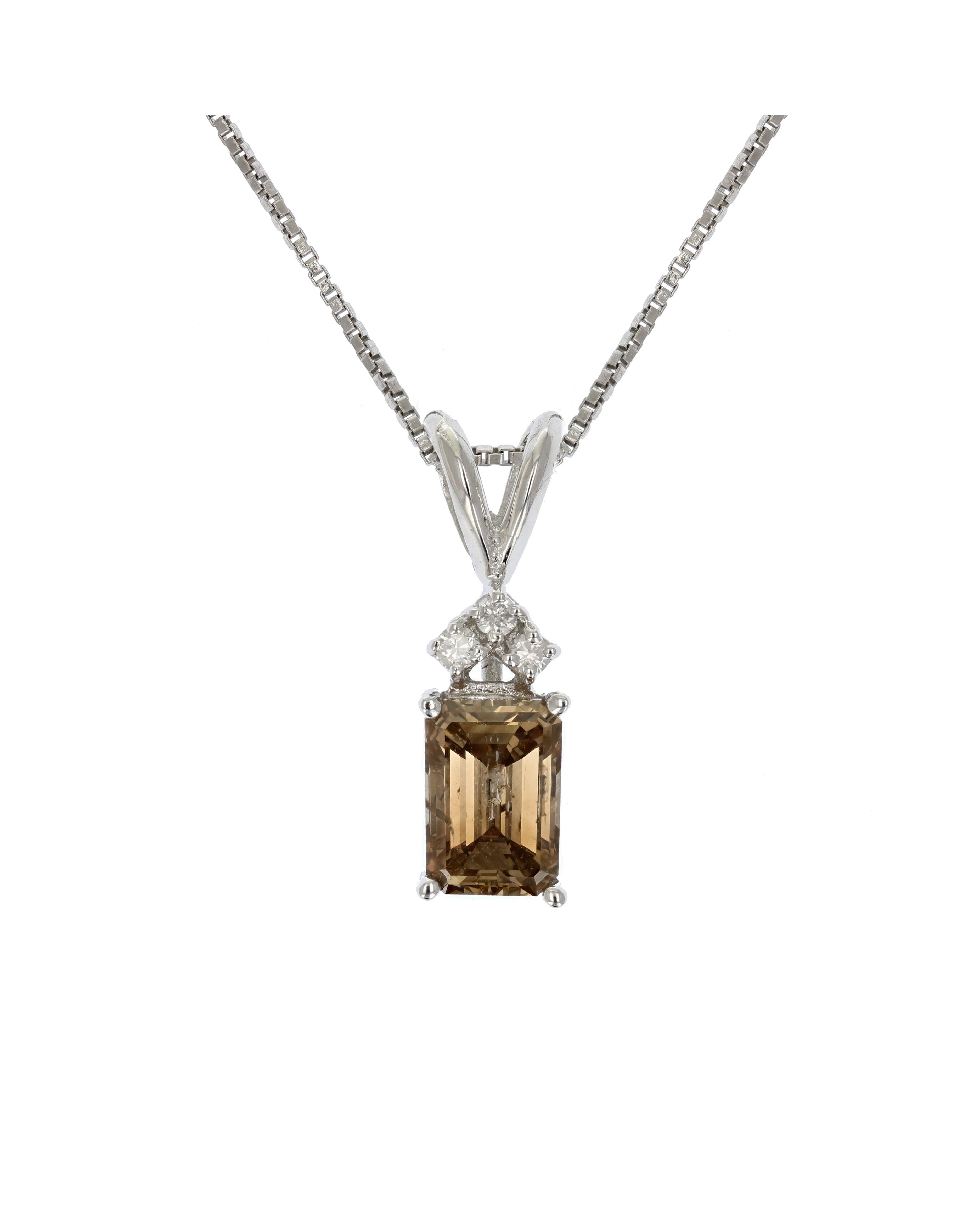 1.25 cttw Emerald Shape Champagne Diamond Solitaire Pendant 14K White Gold Chain